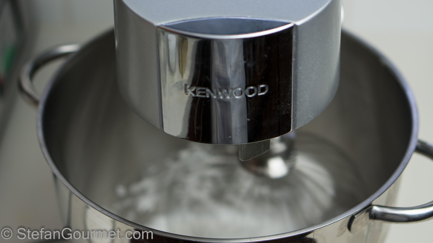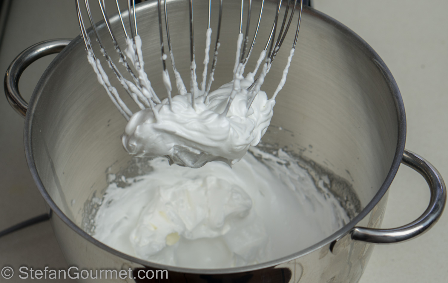 Keep the motor running until the egg whites show stiff peaks when you lift the whisk.