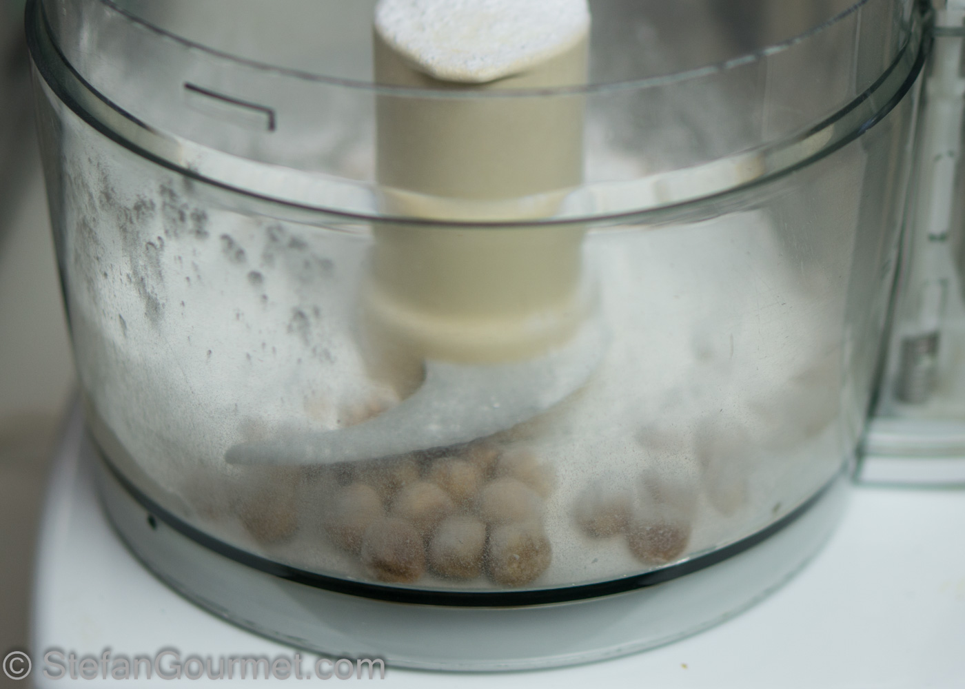 Combine the confectioners’ sugar with 75 grams of the hazelnuts in a food processor.