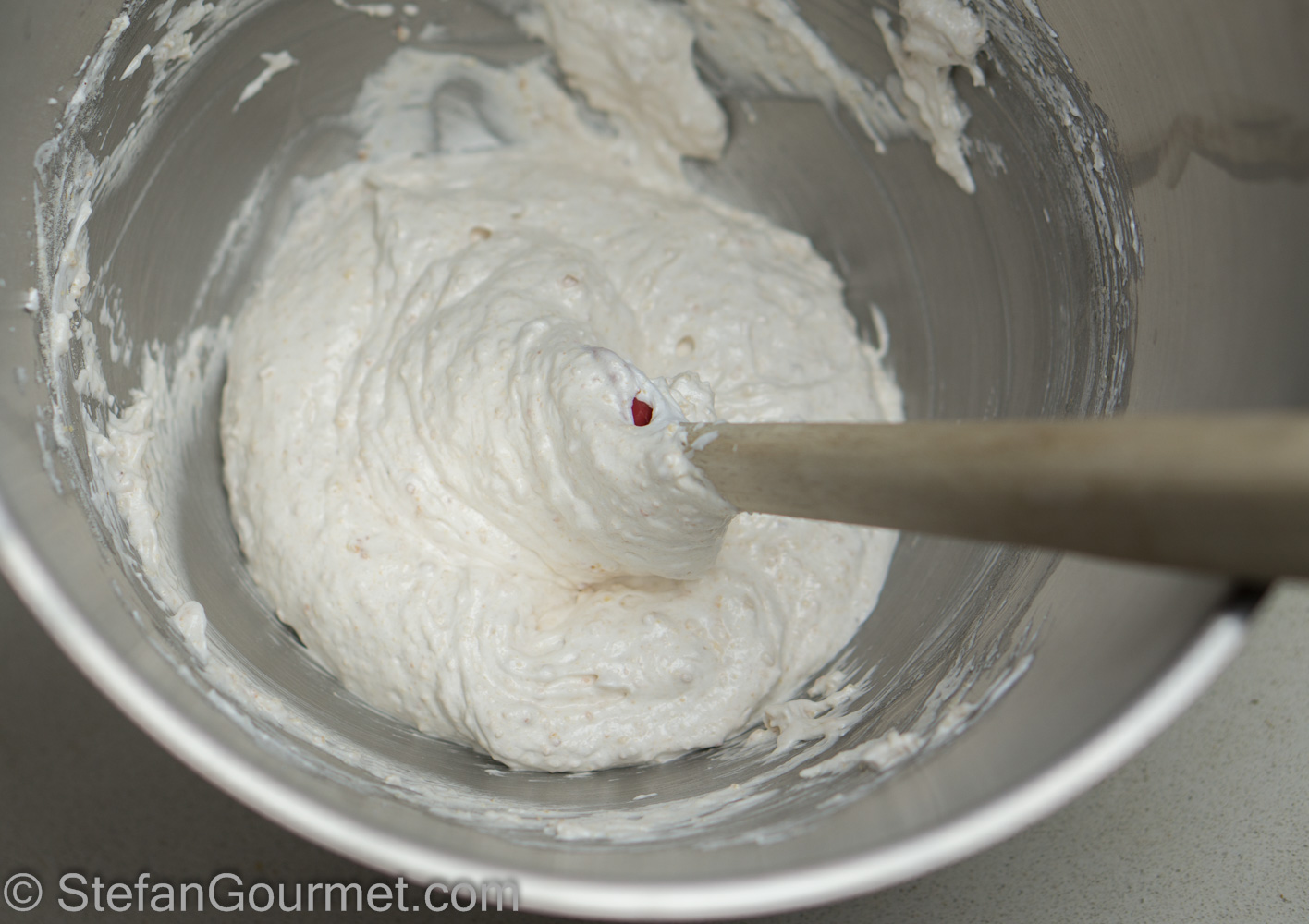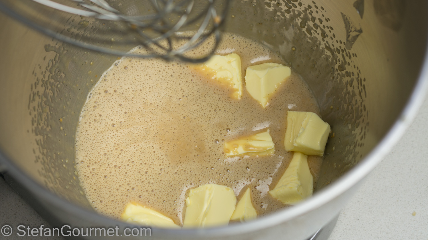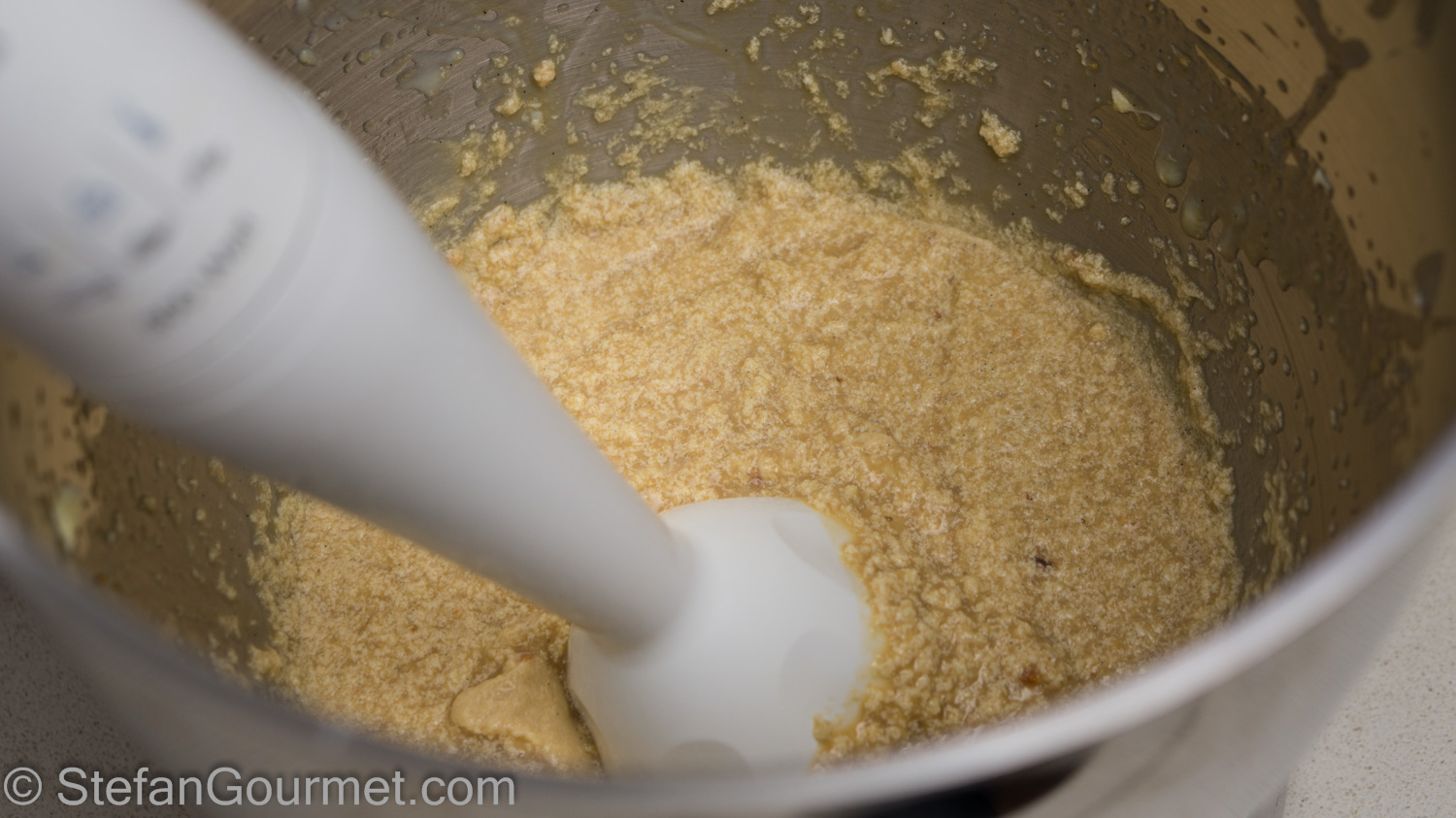 Holtkamp advises to use a blowdrier to warm up the bowl to make it easier to whip the butter in the cream. Since I don’t have a blowdrier, I resorted to using an immersion blender instead.