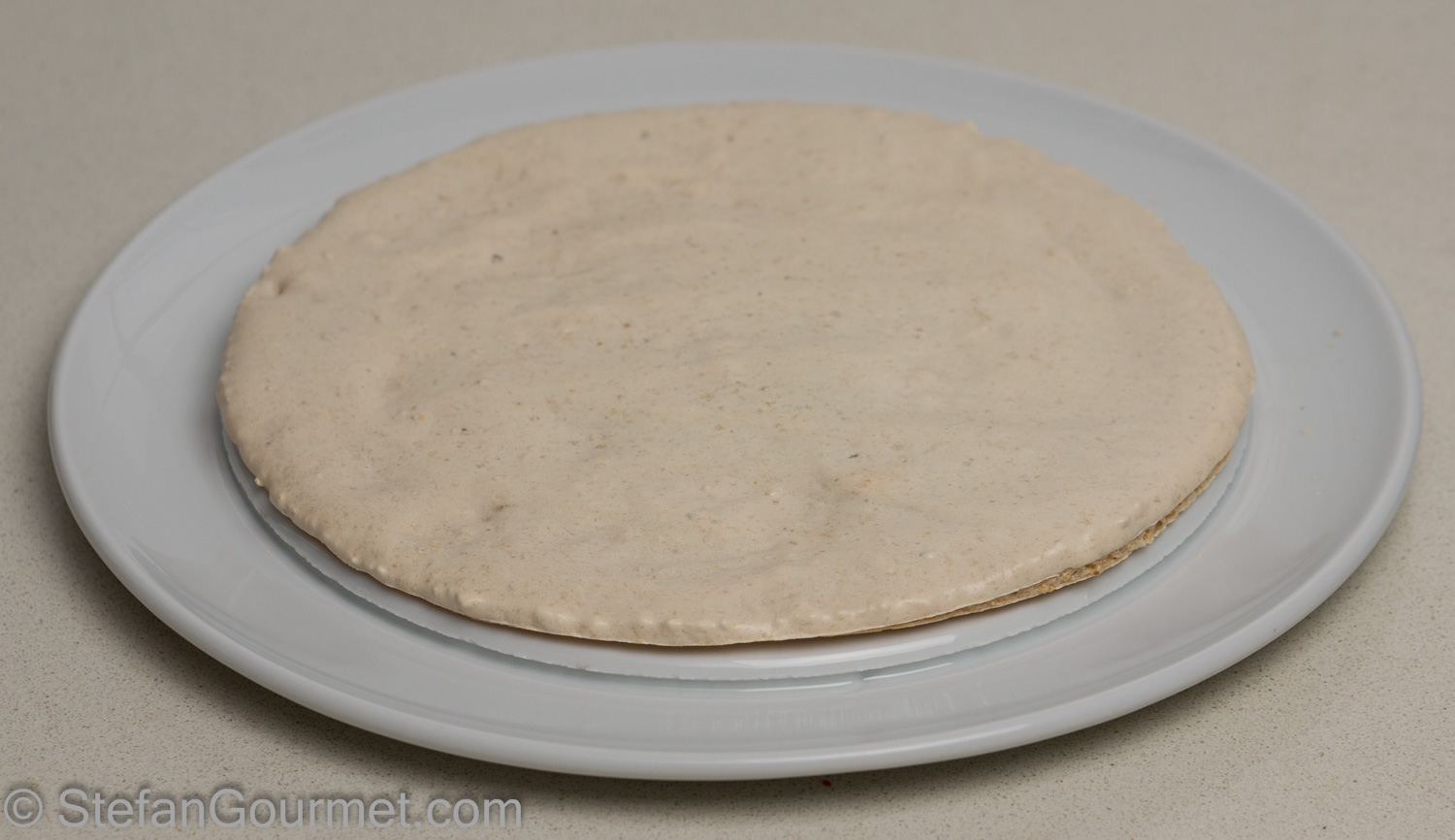 Take one of the two circles of hazelnut meringue.
