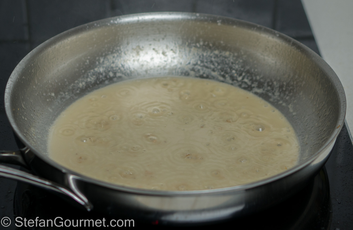 Turn them over and cook for another minute. Take the meat out of the pan and put on preheated plates.