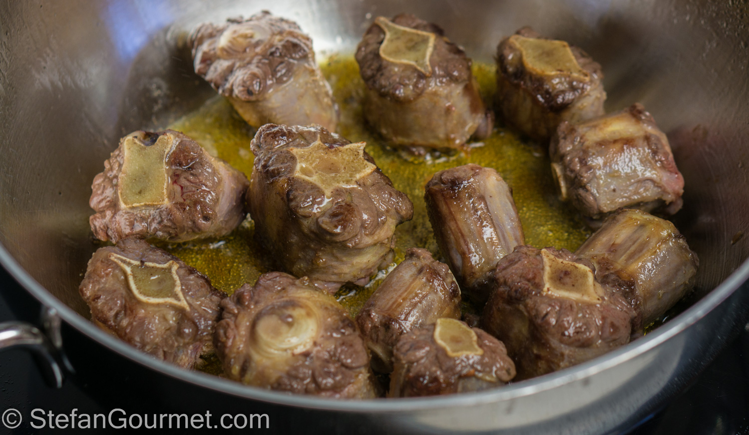 Heat the olive oil in a casserole over high heat. Add the oxtail.