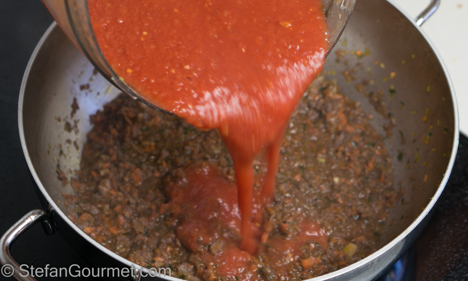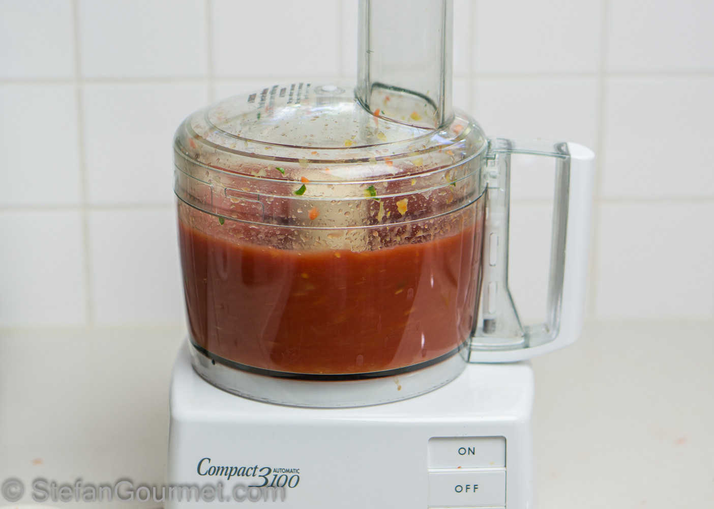 Puree the tomatoes in the food processor…