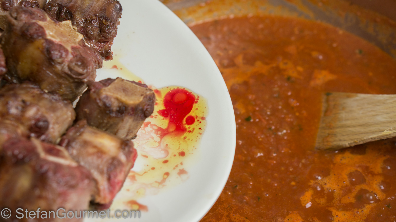 And so when I wanted to prepare coda alla vaccinara (oxtail stewed in tomato sauce Roman style) to free up some space in my freezer, I decided to prepare this sous-vide and perform a side by side experiment by cooking one piece of oxtail separately without the sauce.
