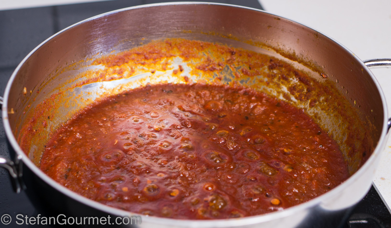 Now bring the sauce to a boil and then reduce the heat to a simmer.