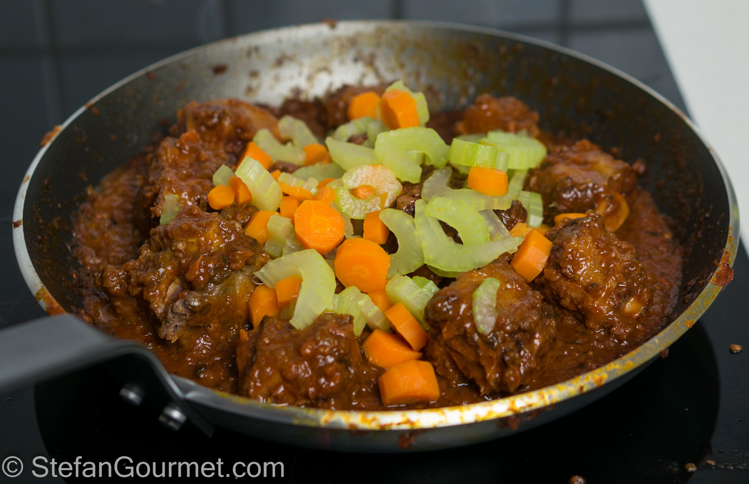 If all went well the sauce should not require additional reduction, but it may be nice to cook it for just a minute over high heat in a non-stick pan just to heat up the sauce a bit. Otherwise you will serve the stew at 60ºC/140ºF and it may cool off rather quickly.