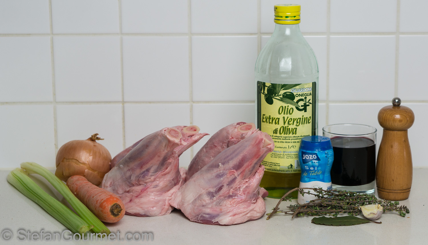 Lamb shank sous-vide is one of my favorite cuts of lamb. I tend to avoid serving meat or fish with bones when preparing dinner for company, unless I know they are comfortable with it. And so in order to serve lamb shank sous-vide, I decided to debone it first. In the case of lamb shanks that is quite easy to do, and the advantage is that the bones can be used to make a stock to enhance the flavor and make a sauce. Another advantage is that you are not restricted to serving one lamb shank per person, but that you can easily serve more or less.