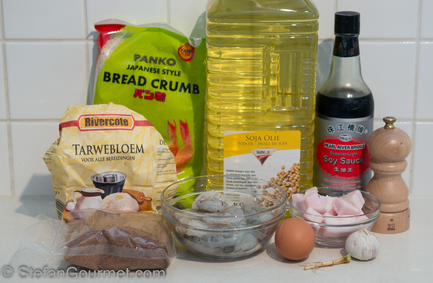 You might expect them to be very similar to Thai fish cakes, but they are in fact quite different. These shrimp cakes have a crispy outside made from panko breadcrumbs, but the ‘secret ingredient’ that gives them great depth of flavor as well as makes them very juicy is pork fat. These Thai shrimp cakes are quite easy to make, and the easiest of this series of four Thai recipes. They are also not very spicy at all, unless of course you serve them with a very hot and spicy dipping sauce.