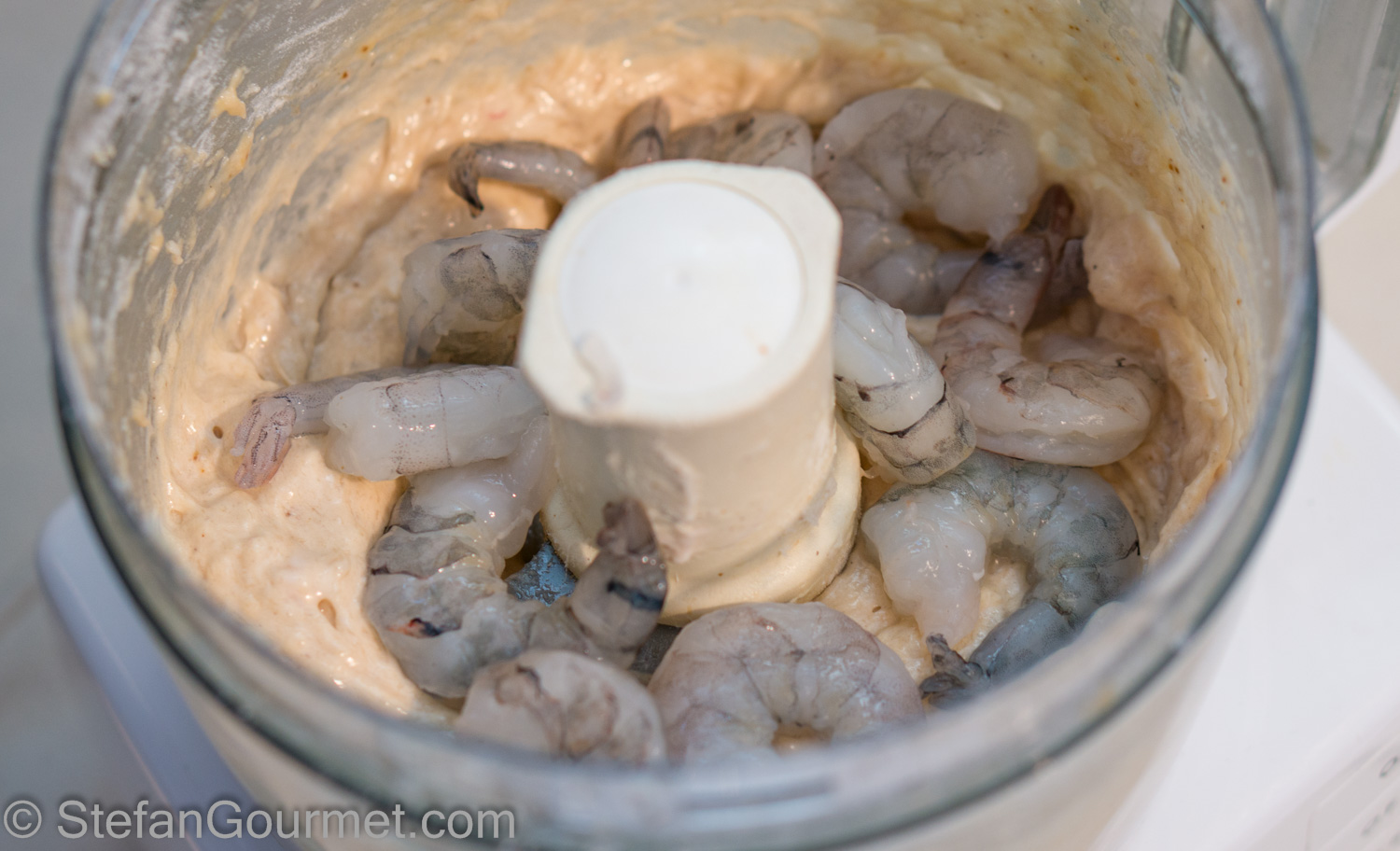Add the remaining 160 grams (6 oz) shrimp meat.