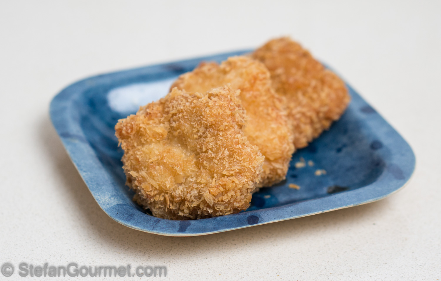 I suspect there may be a regional thing going on — similar to the non-existence of “Italian” food (according to every Italian, only his/her mother prepares things the right way, which creates heavy debates on forums that I love to read). I did notice that, apart from the dipping sauce, the flavors of these shrimp cakes don’t seem to be very typical. I wonder if Miranti is going to read this and chime in 😉
