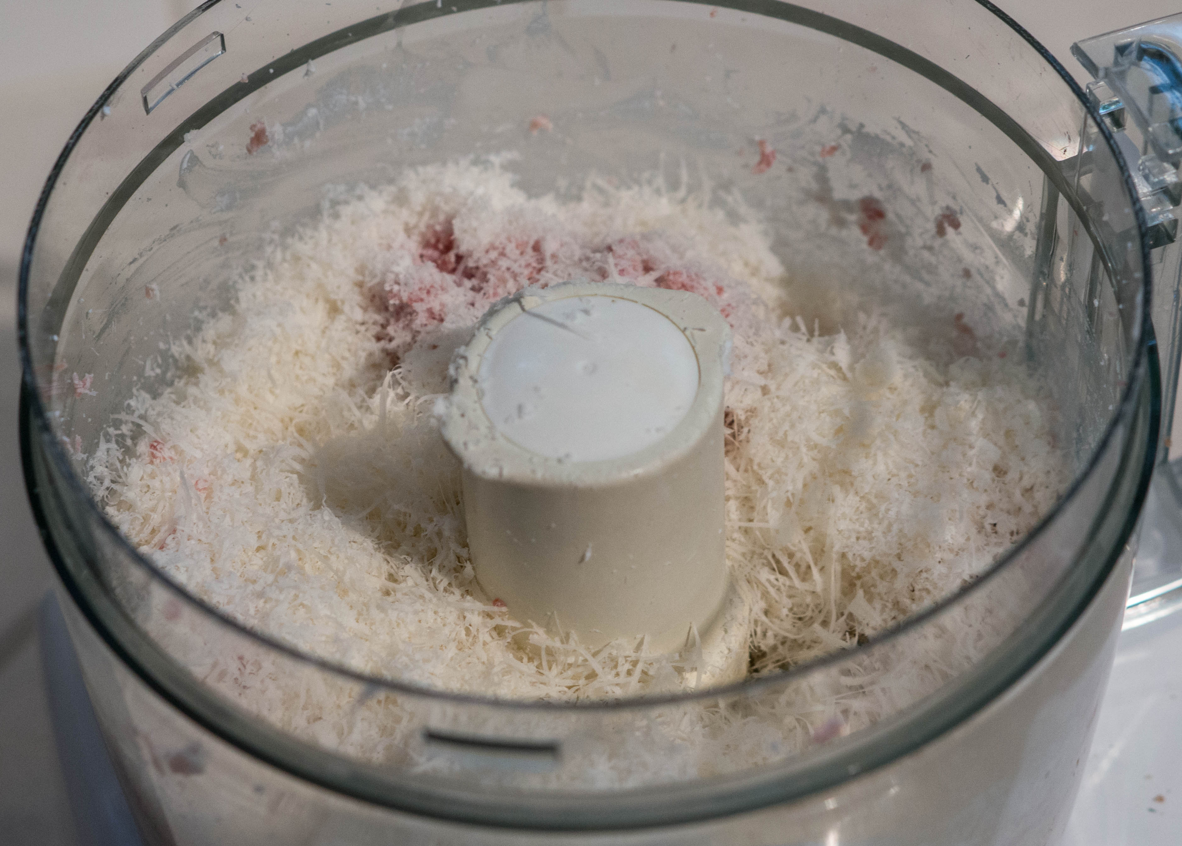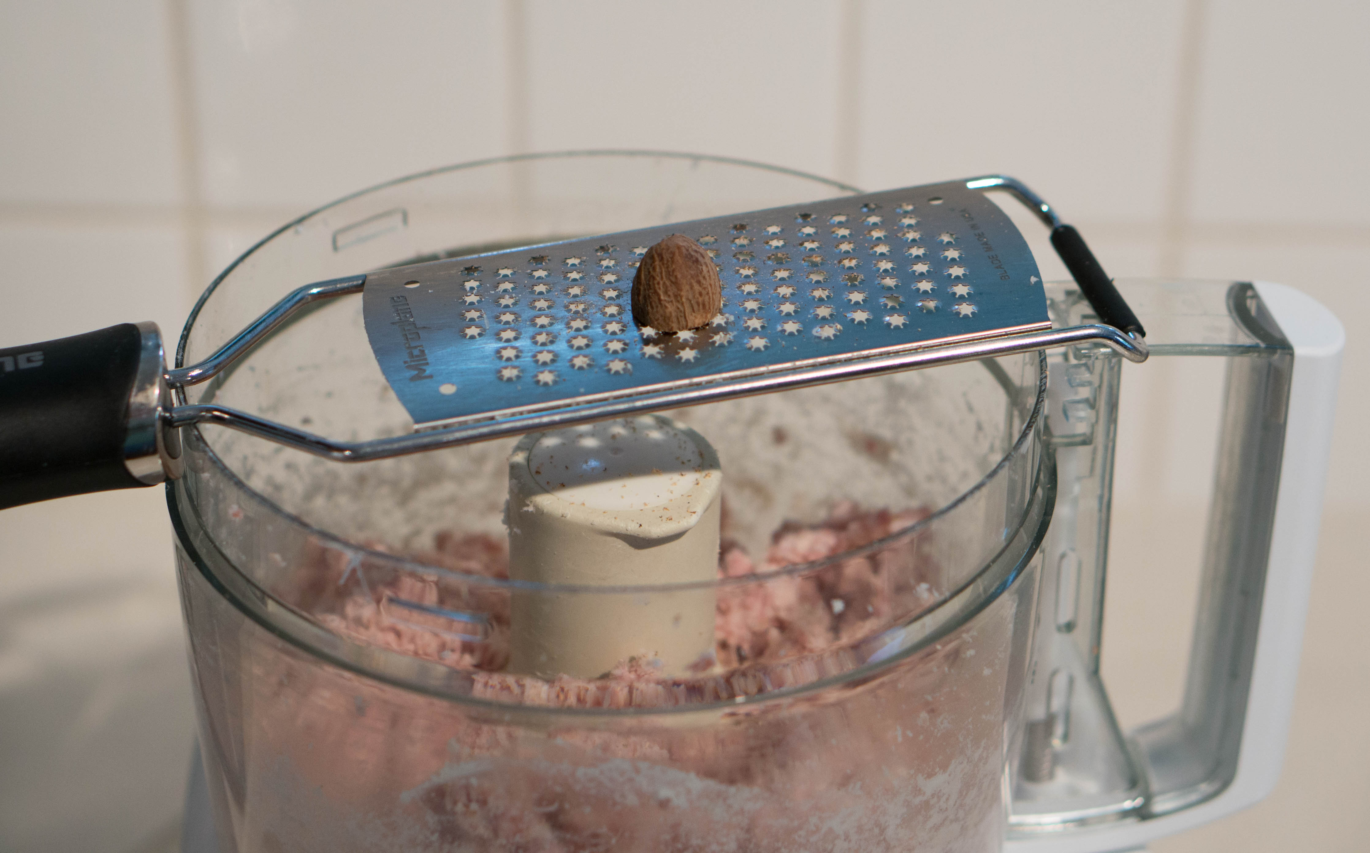 …and freshly grated nutmeg. Process briefly to incorporate the cheese and nutmeg.
