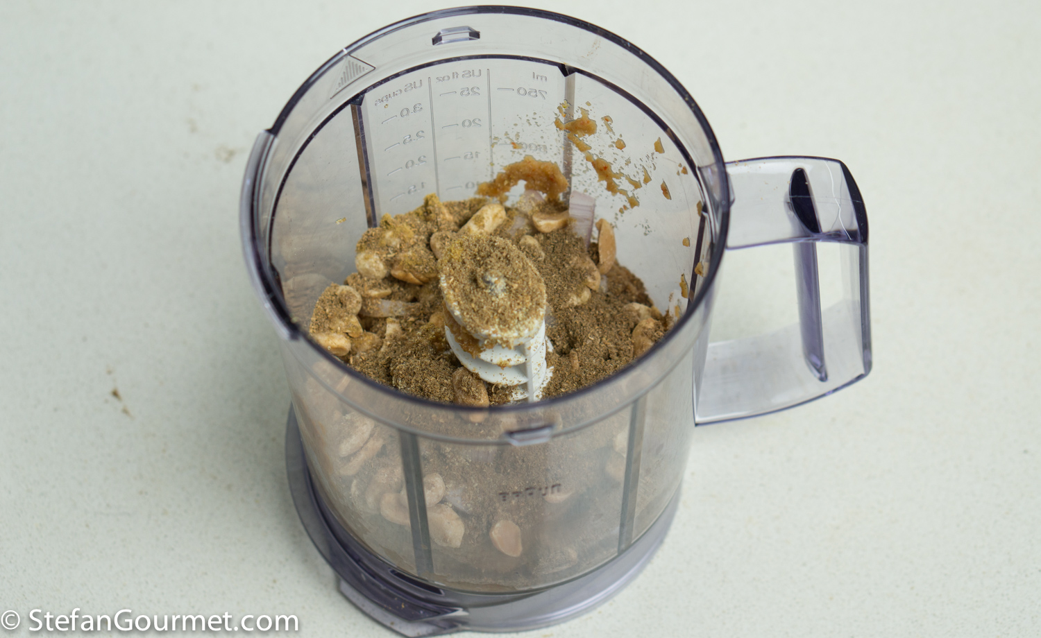 Process until the peanuts are ground and everything is well mixed.