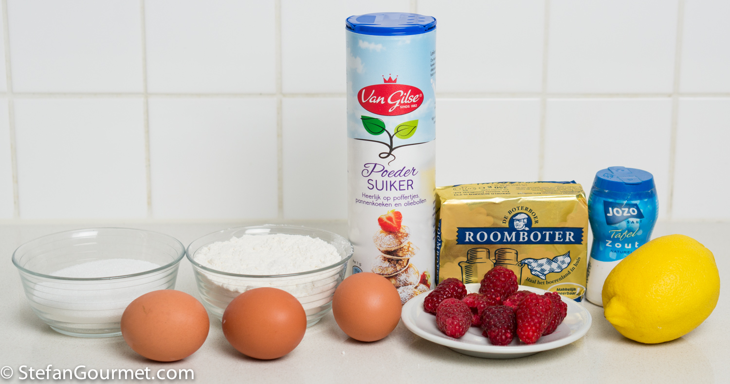 They are quite easy to make. The base is very similar to that of pound cake, but the baking powder should be left out as we want to bake cookies, not muffins. For the glaze I made an egg white-based “royal” glaze and colored it with raspberries (instead of red food coloring, carmine, which is made from insects). This also gives the glaze a nice raspberry flavor.