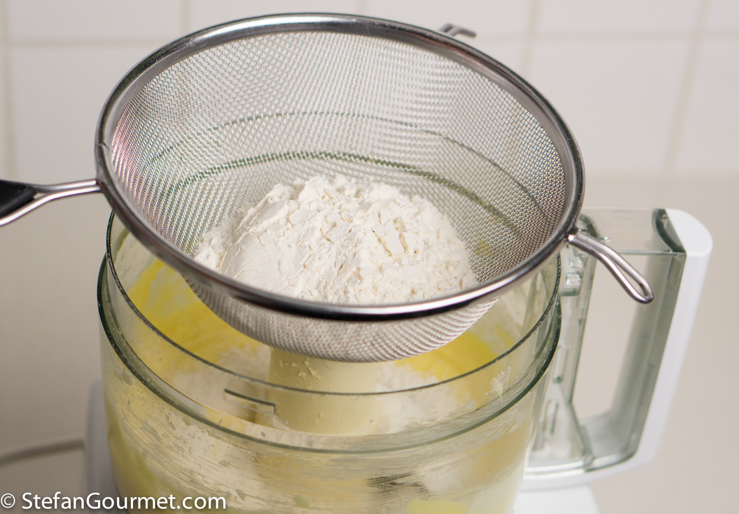 Mix 100 grams butter with 100 grams sugar in a food processor…