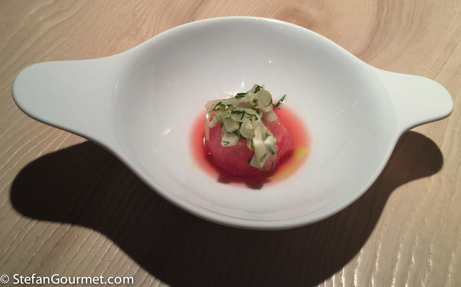 A nice palate cleanser before the degustazione begins: water melon sorbet with fennel.