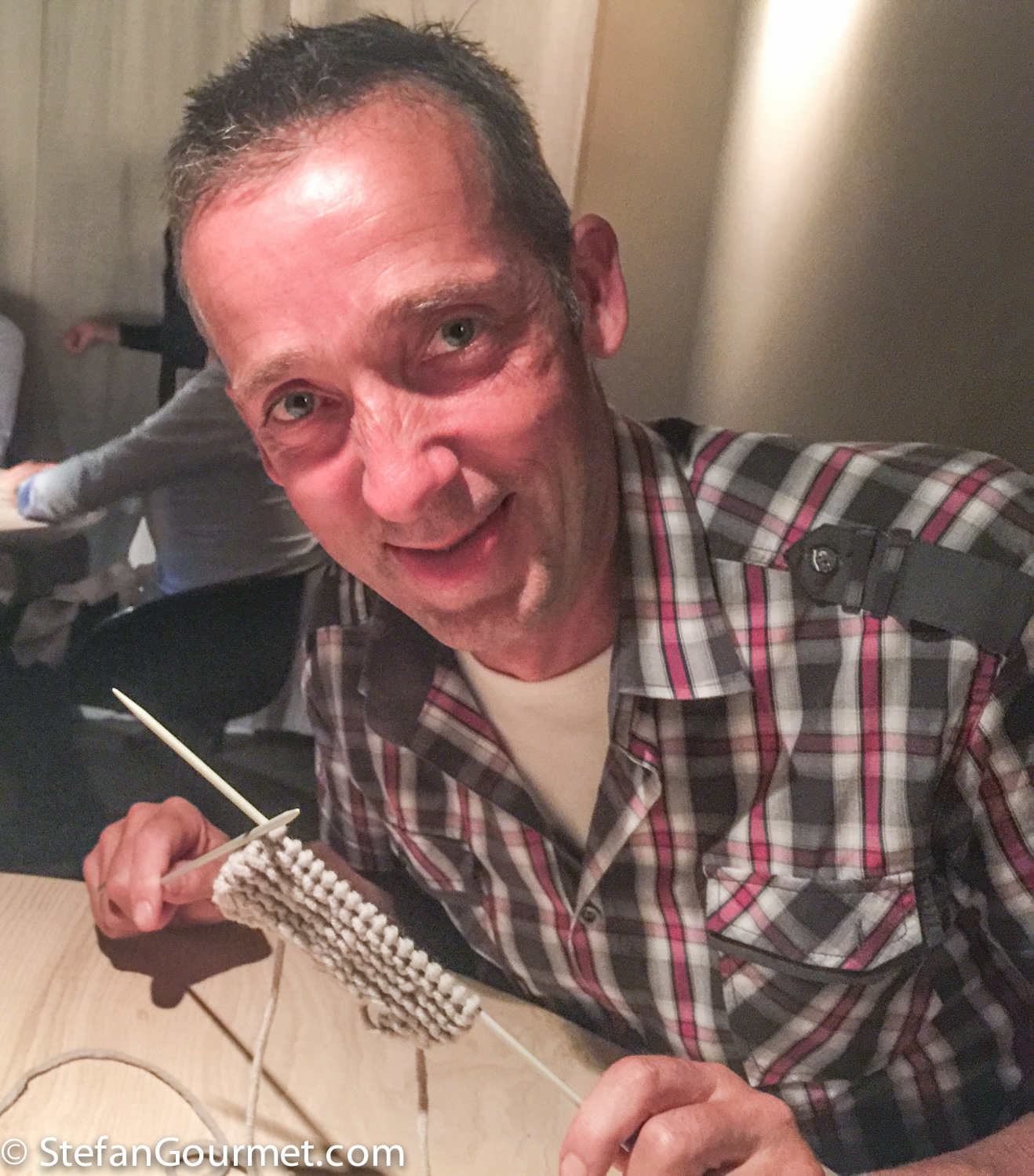 To the joy of both serving staff and other guests, Kees actually started knitting 🙂 They said nobody had knitted that much so far.