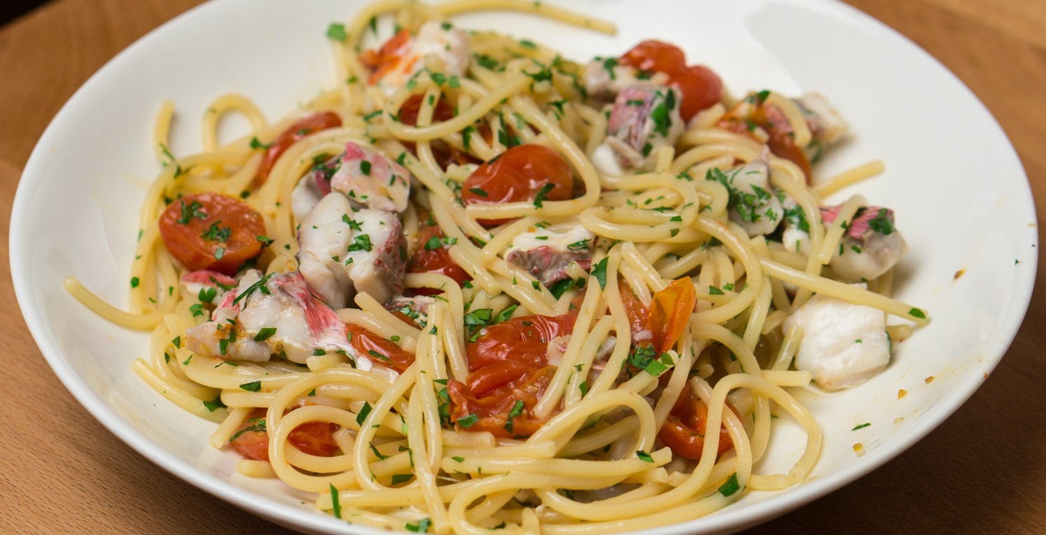 Cover the pan and allow the fish to cook in the heat of the pasta. This will only take a couple of minutes.