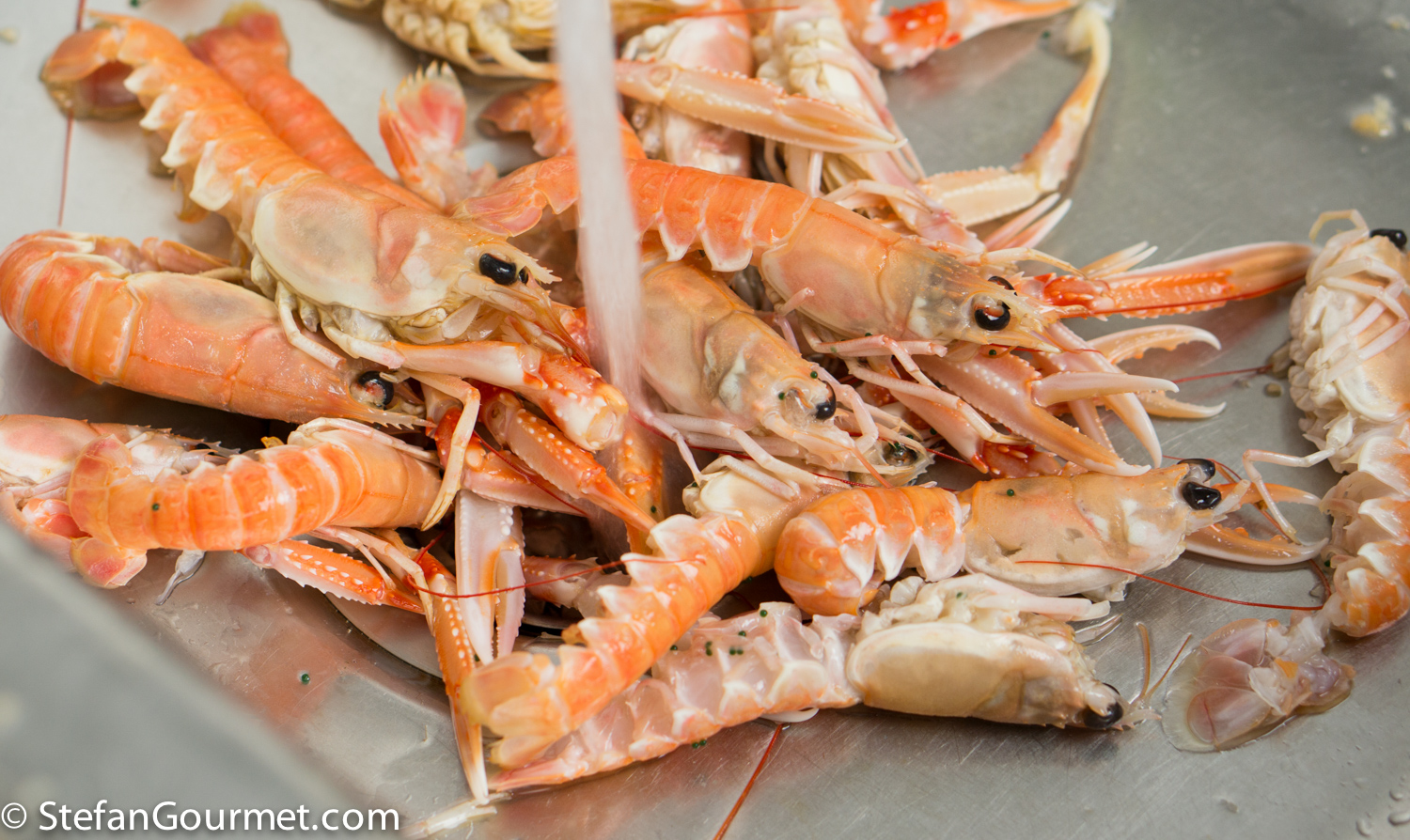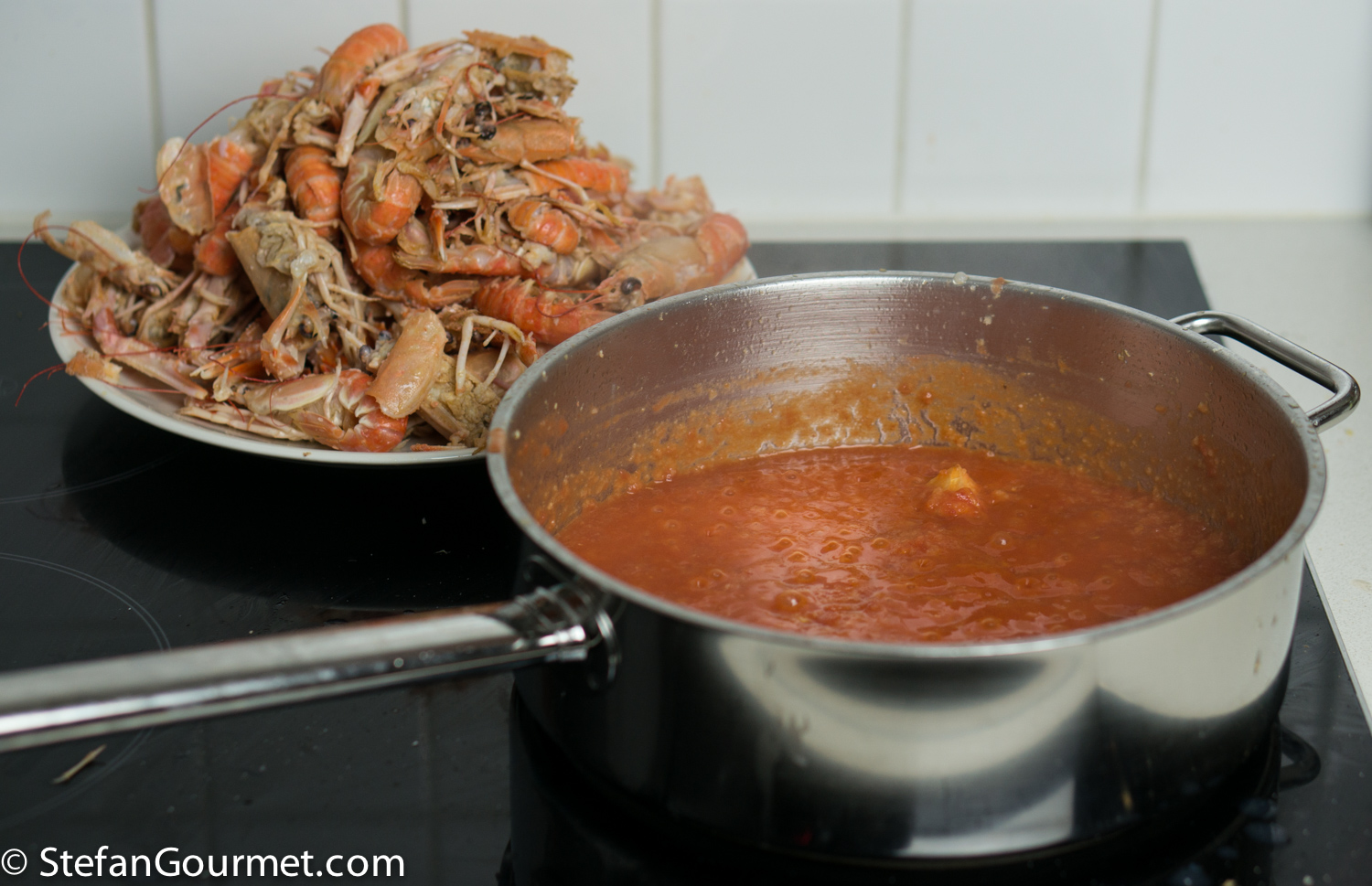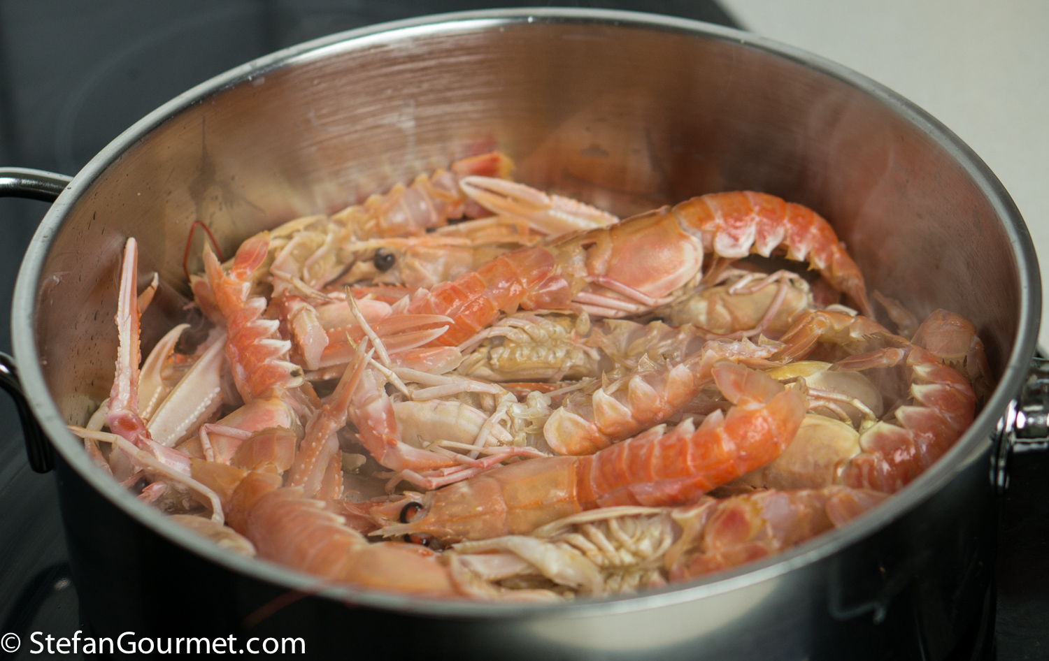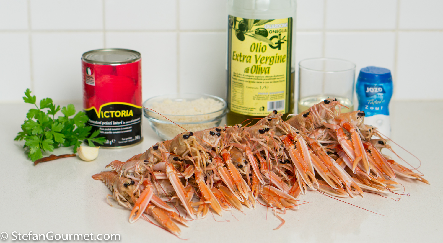 By including them in the dish this way (they will be discarded before serving), there will be just a hint of chilli and garlic in the dish, which is just right for the delicate flavor of the scampi.