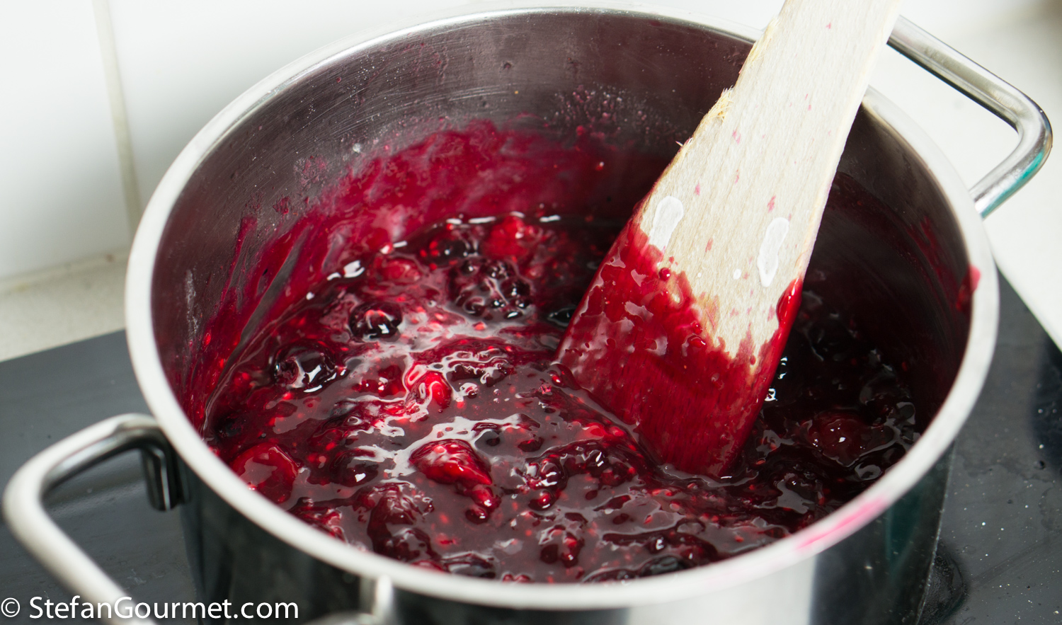 Cook, stirring, until the berries have thickened, about a minute. Then turn off the heat and allow to cool.
