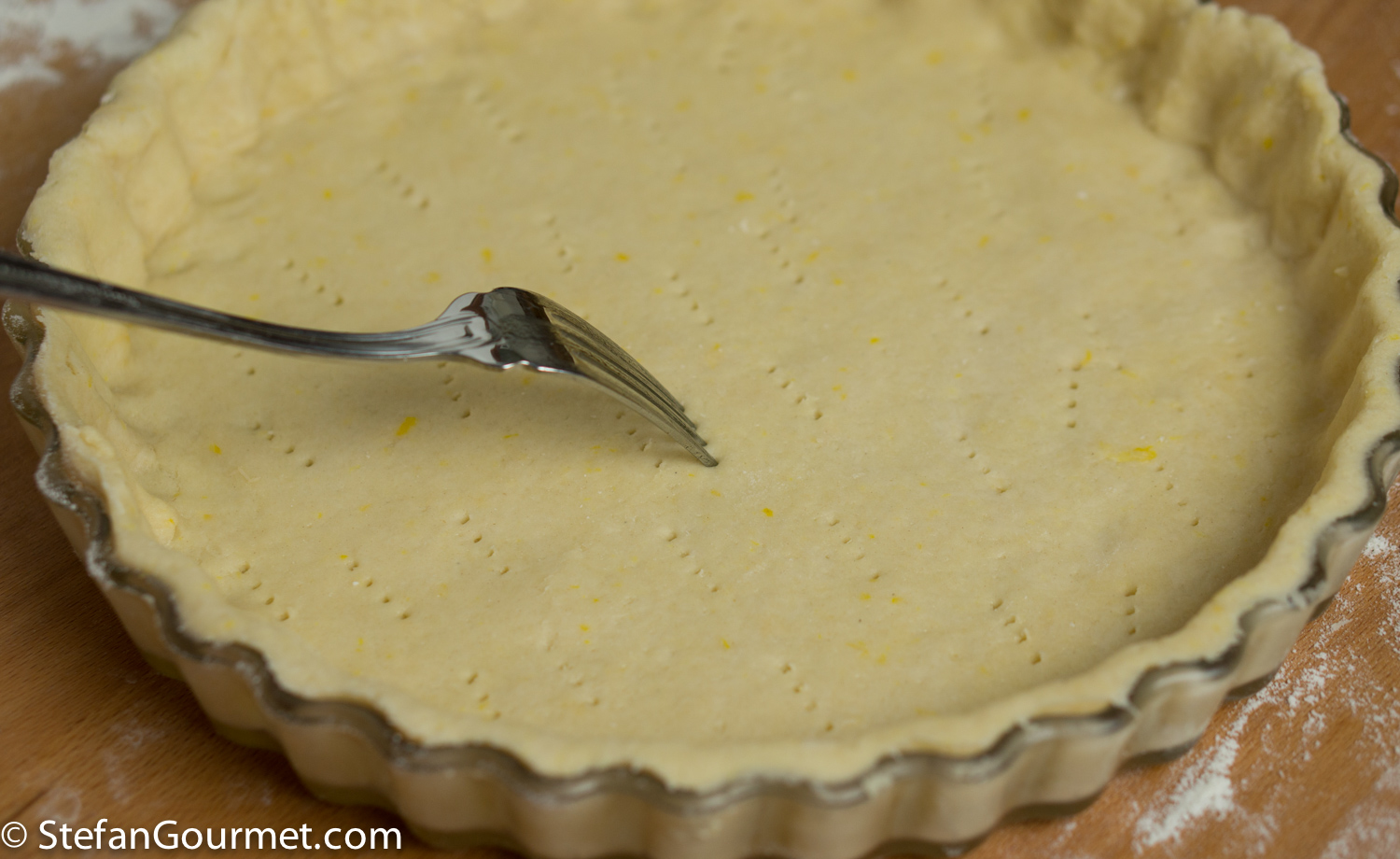 Prick the dough all over with a fork.