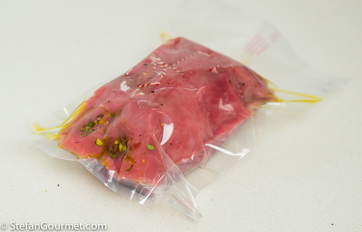 Vacuum seal. Everything up to here can be prepared up to a day in advance. Refrigerate the vacuum sealed meat until 3-5 hours before you’d like to serve.
