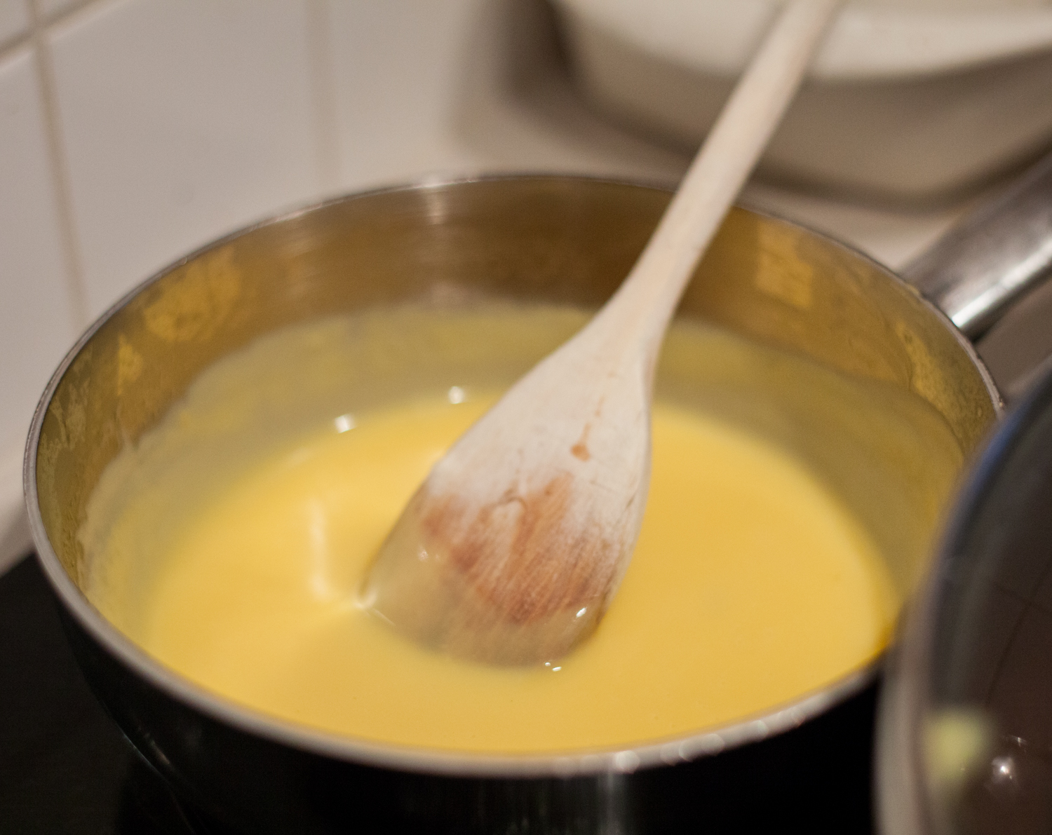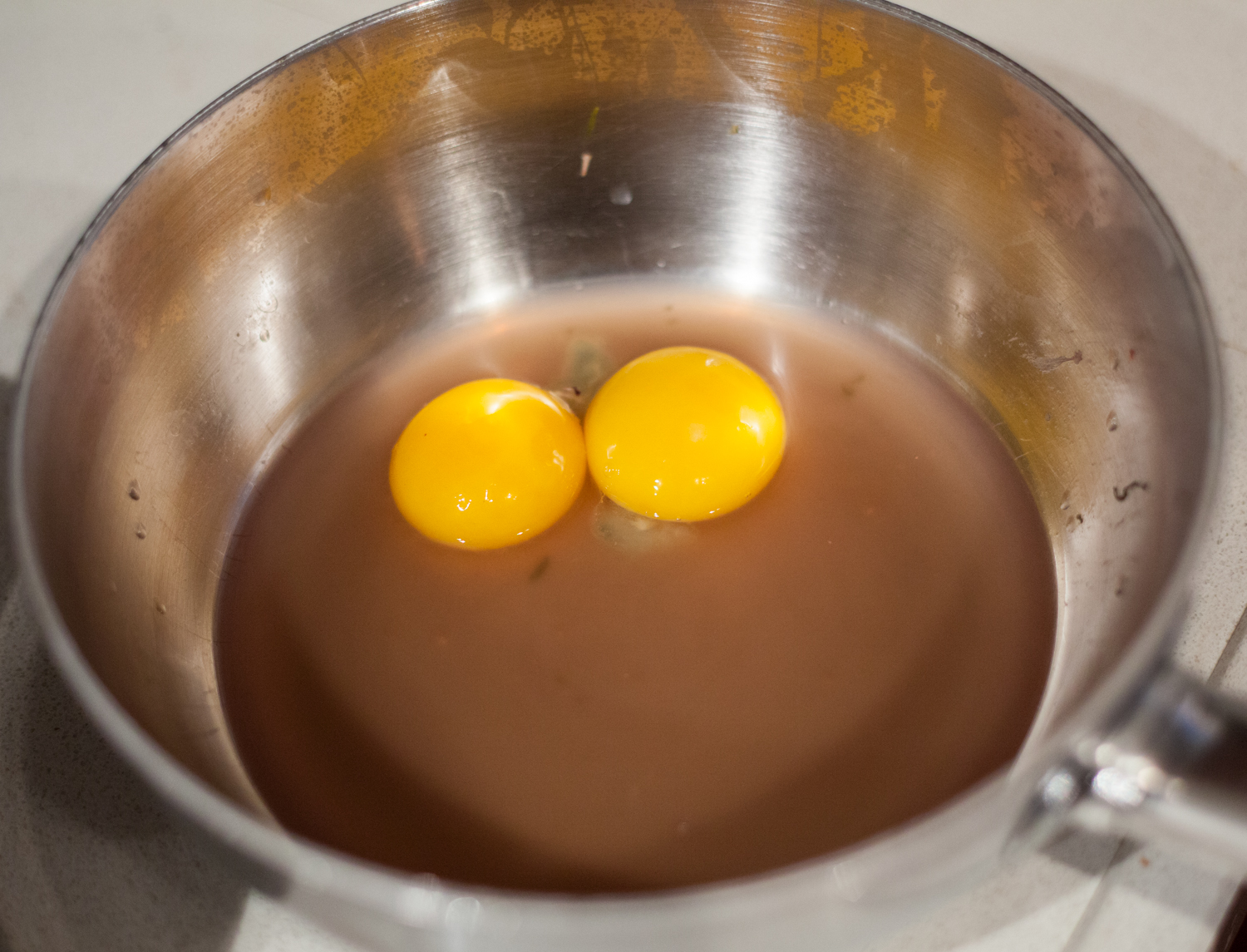 Then the béarnaise was made by adding egg yolks to the strained base…