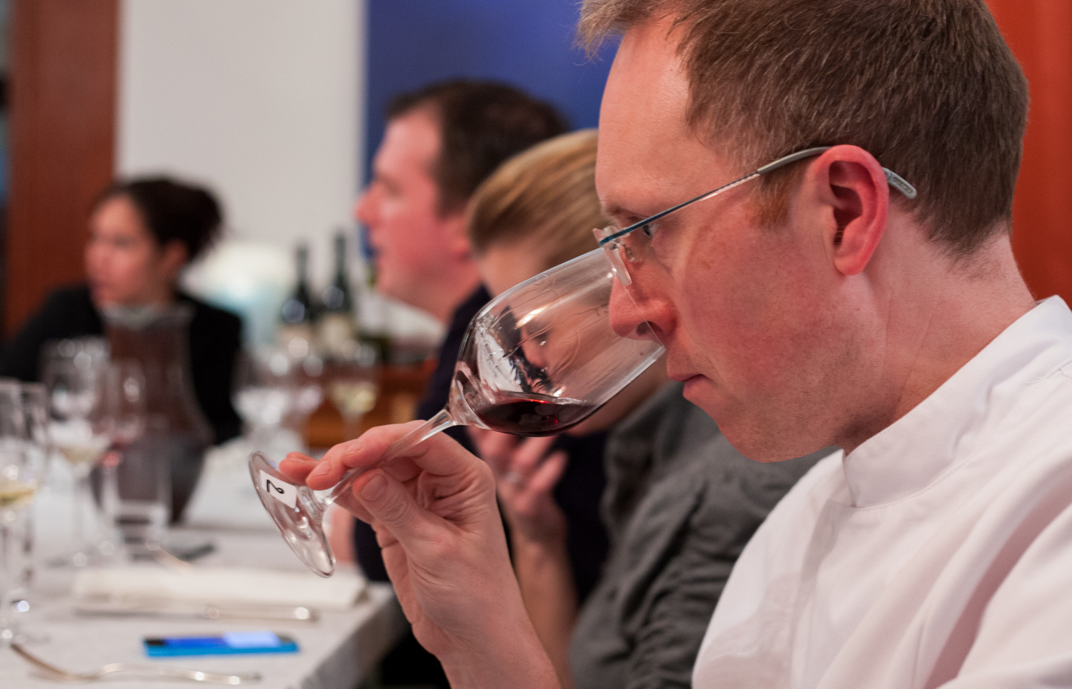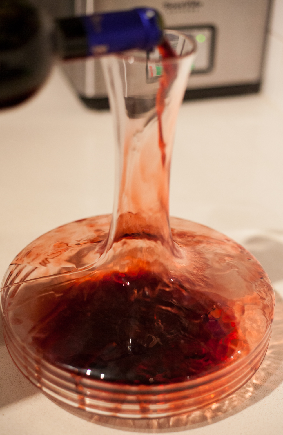 Then I pour both wines, and I encourage everyone to try the wines without the food while the dish is being finished.