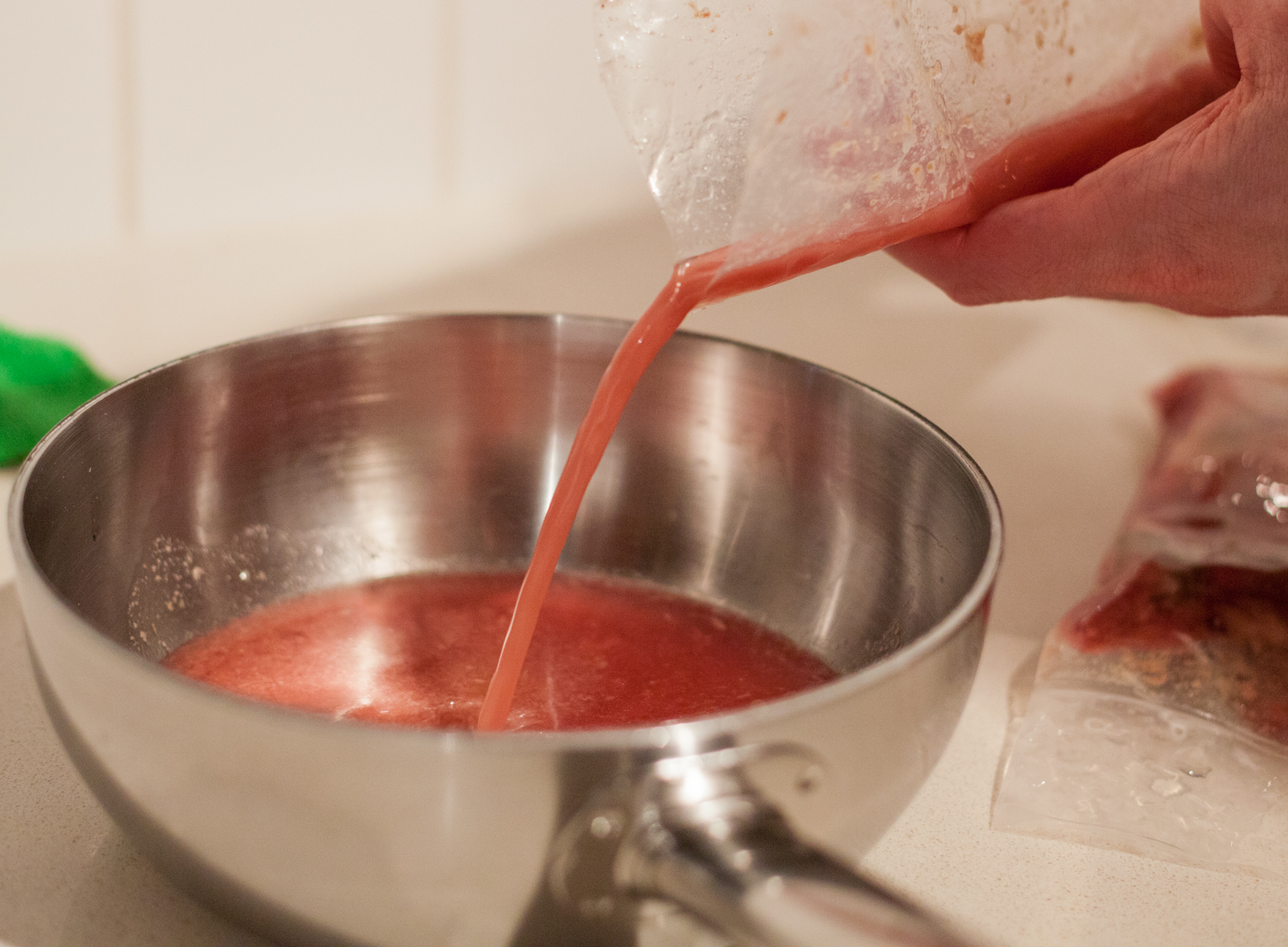 The juices from the sous-vide pouch with the iberico pork were poured into a saucepan…