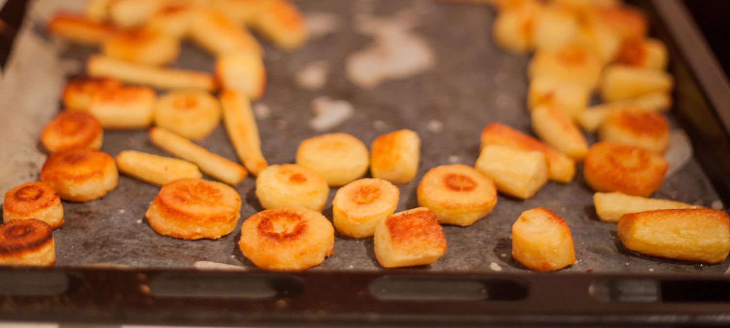 For the second course, the parsnips that were first cooked sous-vide were finished in the oven in pork fat.