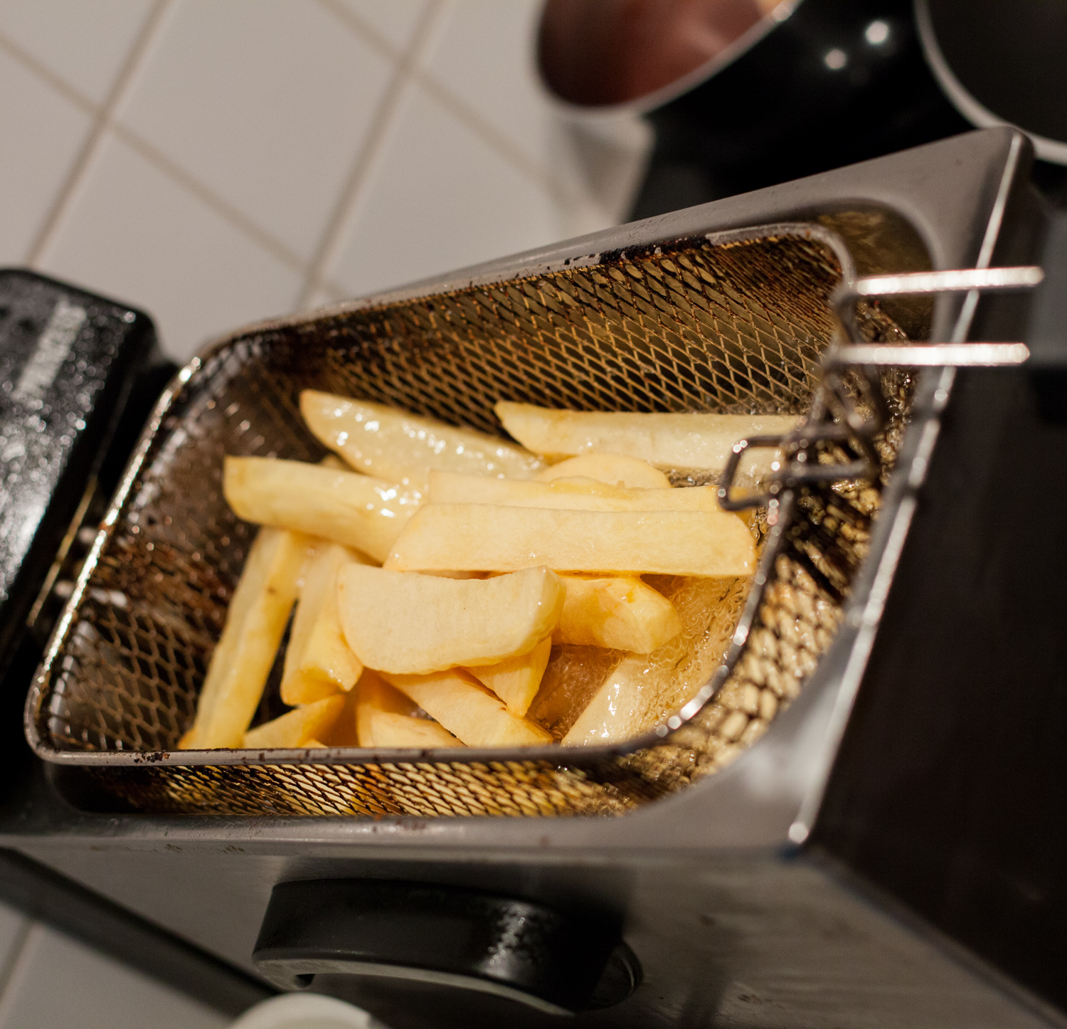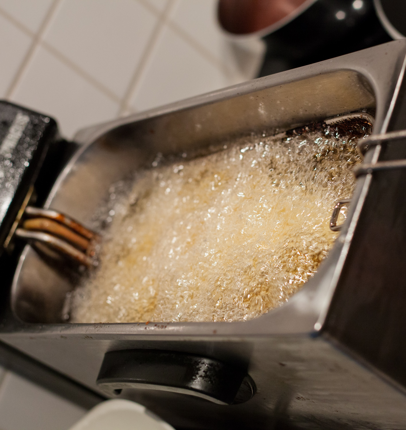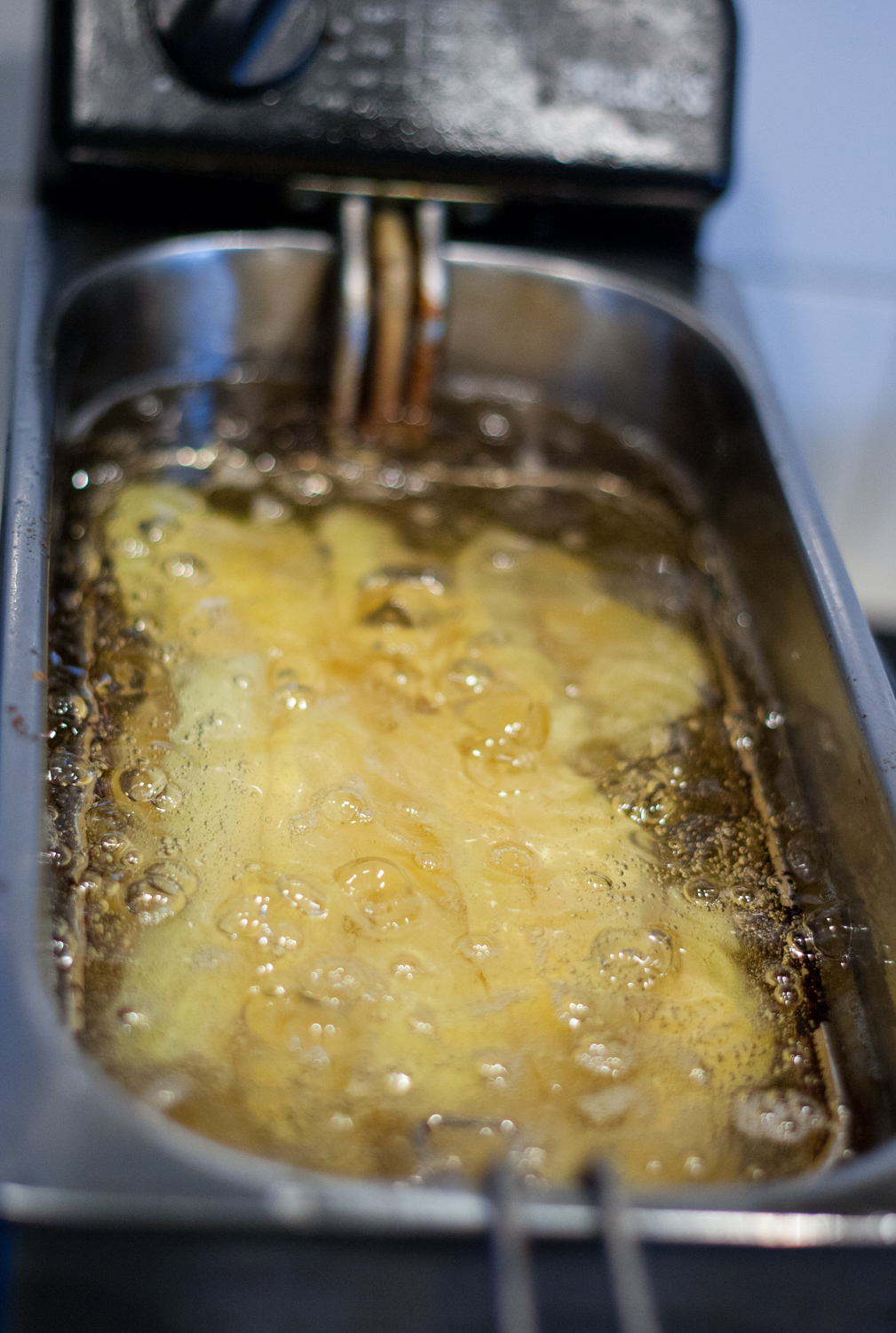 The potatoes needed to be peeled, cut into fries, and fried for the first time in beef tallow (these fries needed 12 minutes at 130C/265F for the first fry).