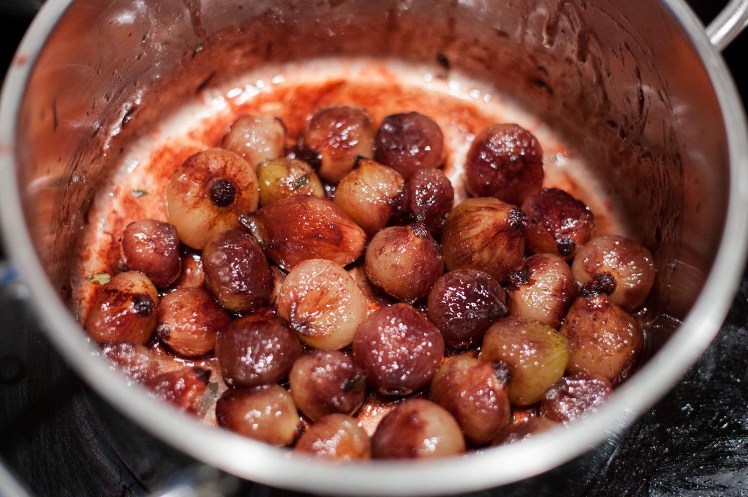 …and they were sautéed until golden. The braised pearl onions only needed to be heated up.