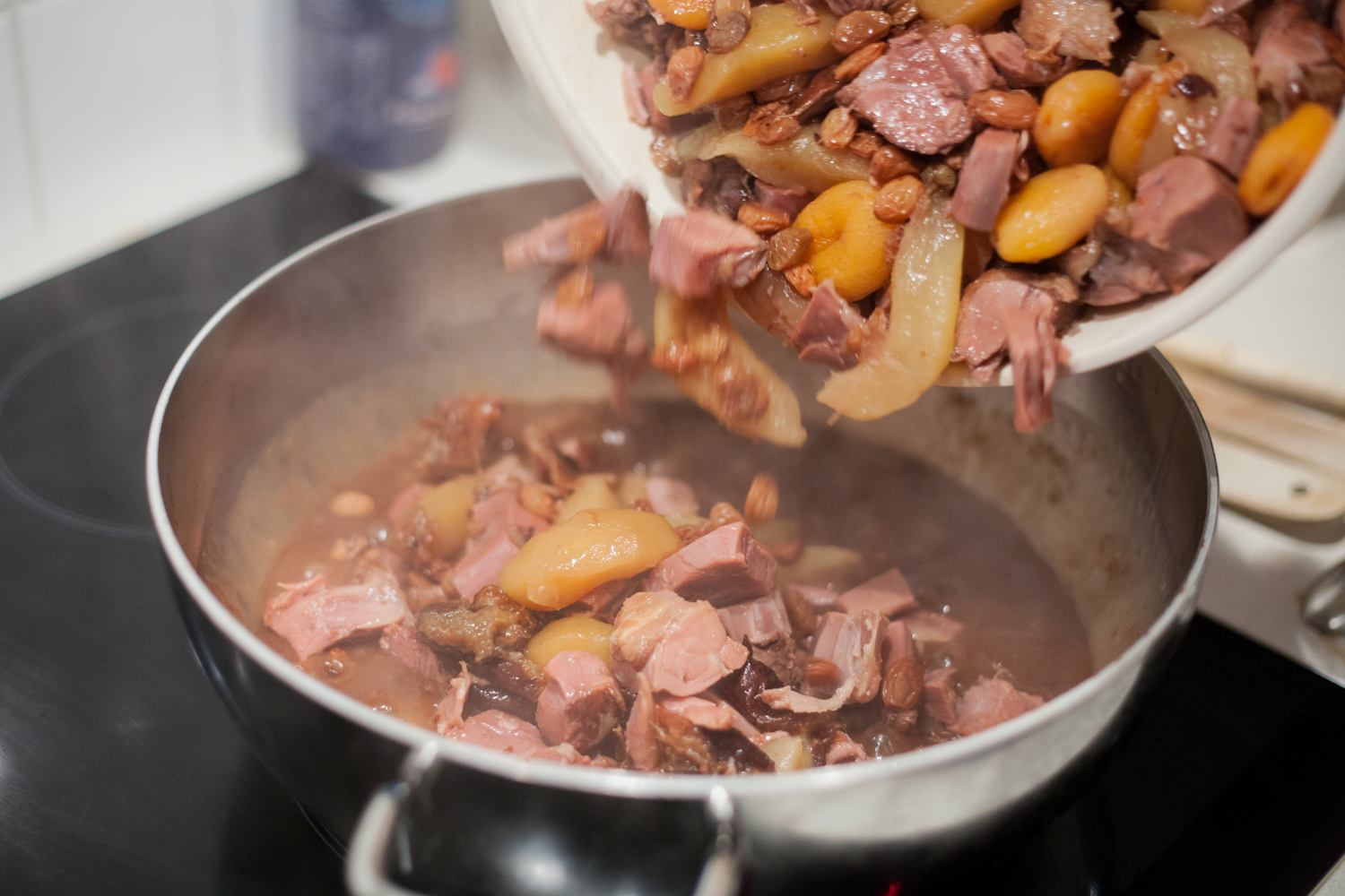 And finally the sweet Algerian lamb stew was served with toasted slivered almonds.