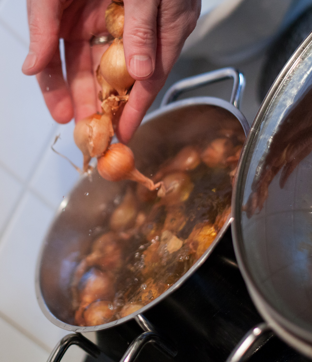 The pearl onions needed to be blanched so it would be easier to peel them.