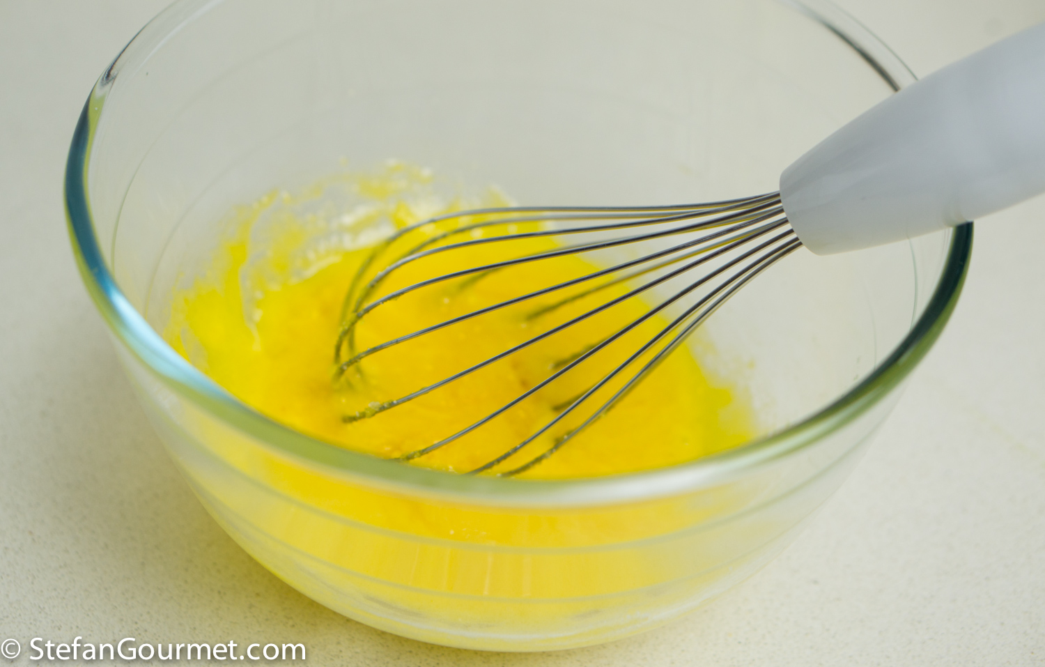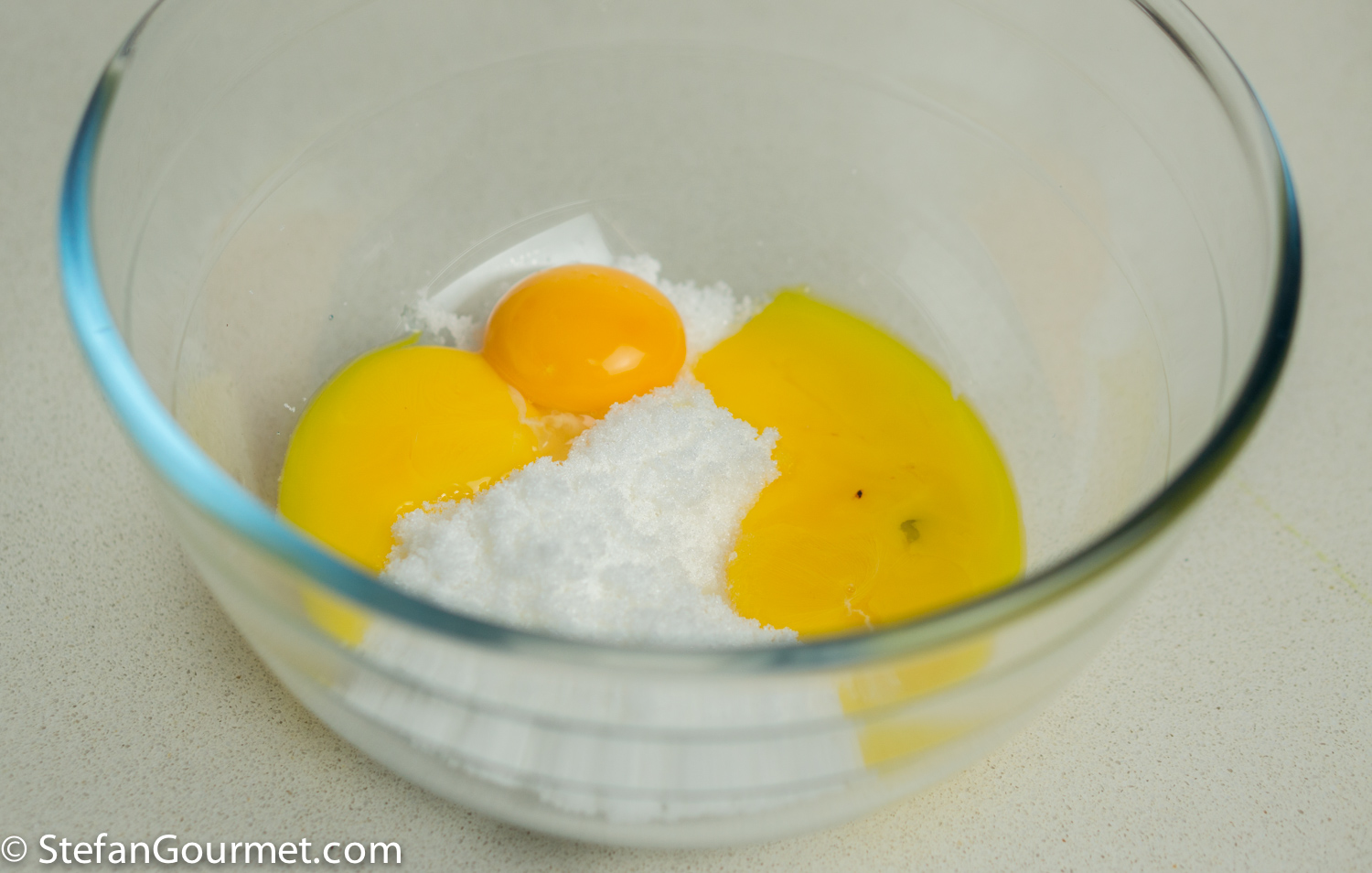 Whisk the egg yolks and the sugar.