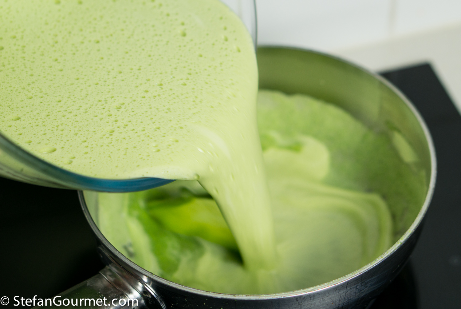 After those 10 minutes, transfer the milk and basil to a blender and blend on high speed until very smooth.
