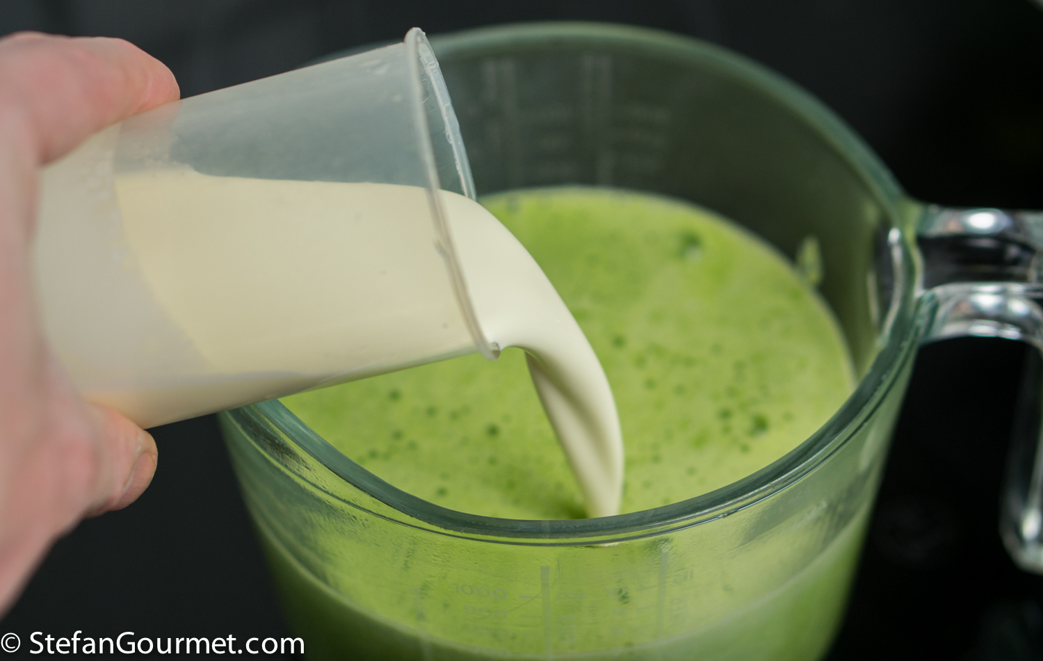 Transfer the mixture to a bowl or jug and add 125 ml (1/2 cup) of heavy cream.