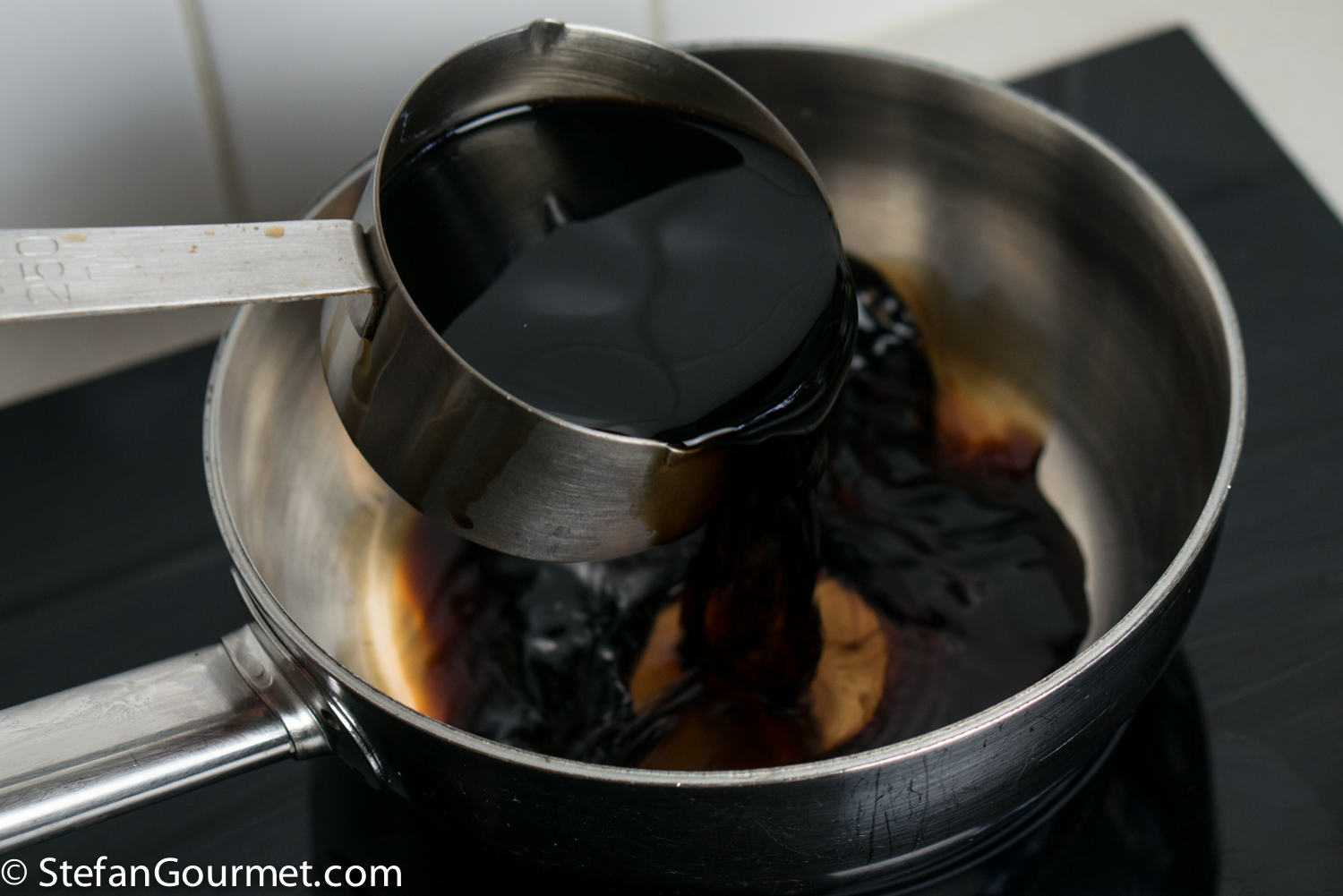 To make the balsamic syrup, pour 250 ml (1 cup) balsamic vinegar into a saucepan.