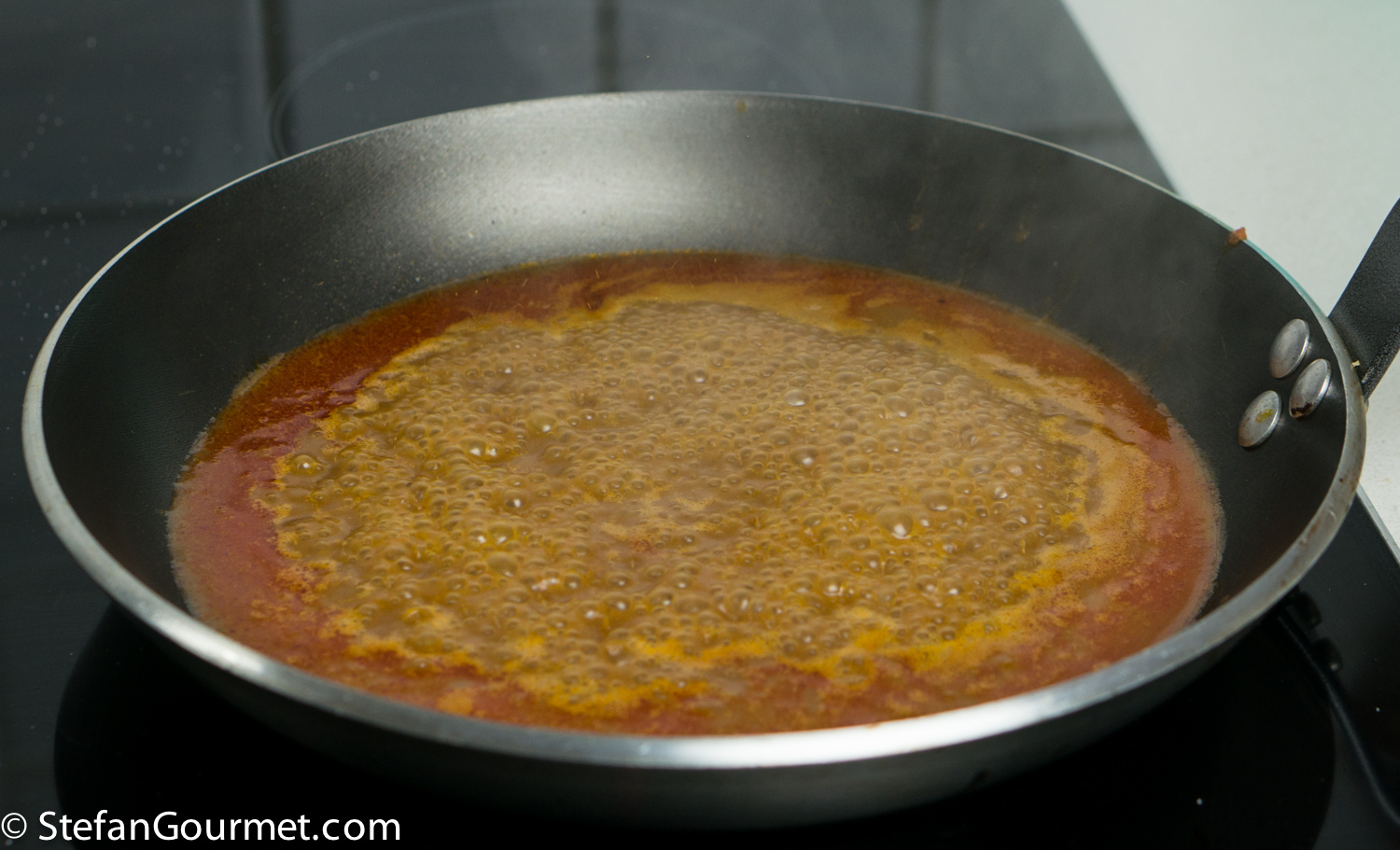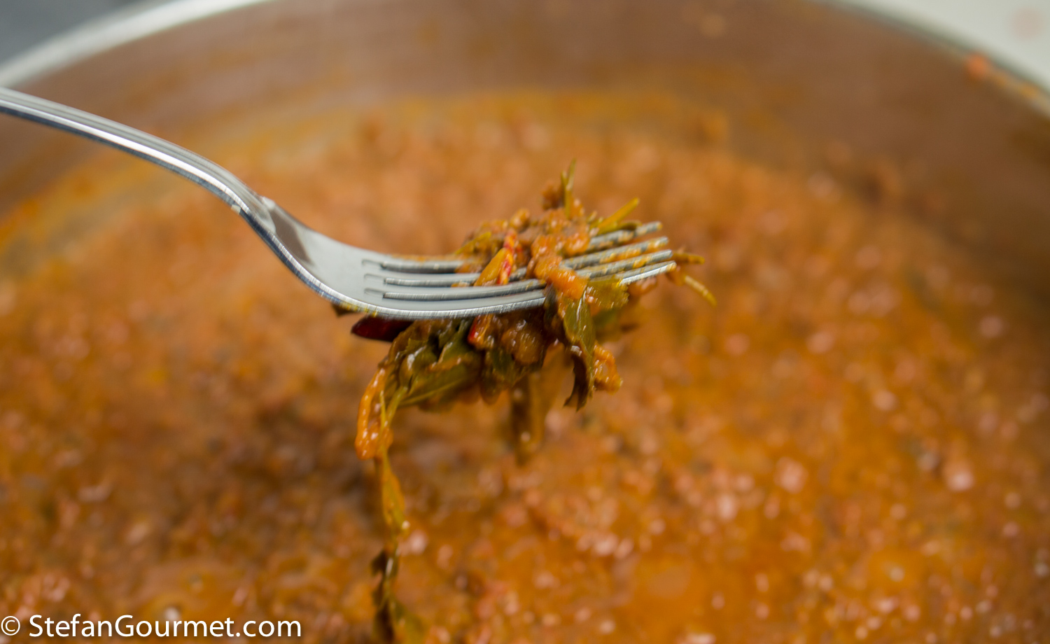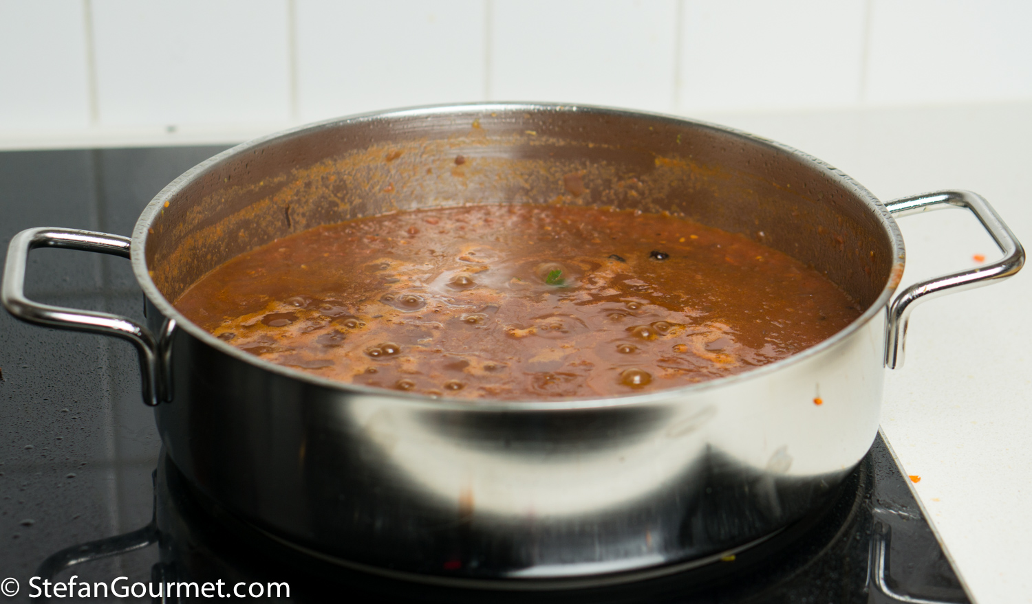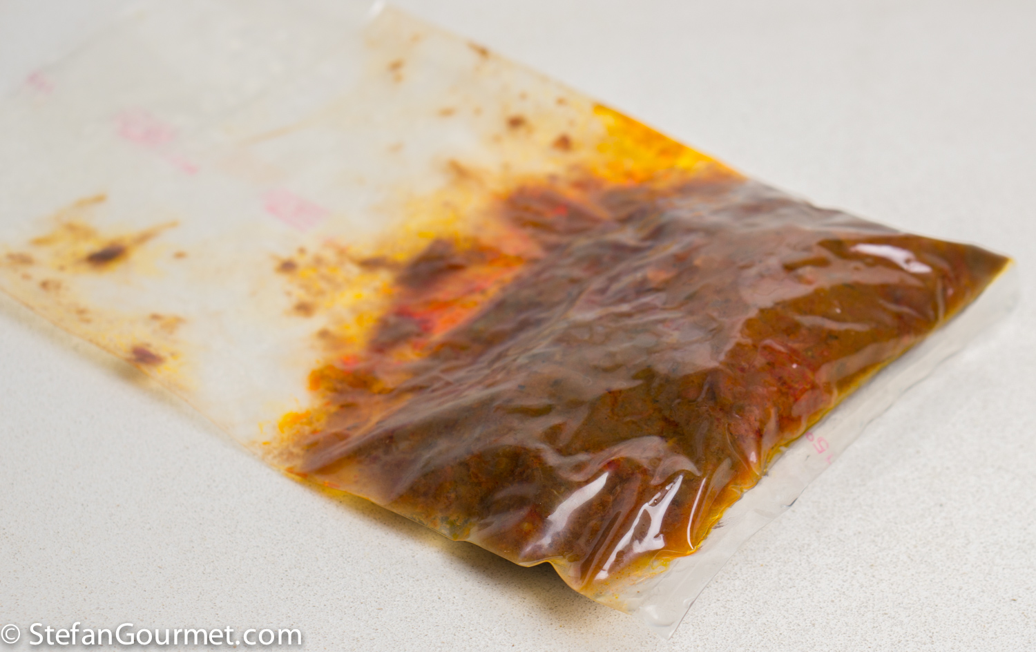 Ragù di Cinghiale is a famous pasta sauce made with wild boar meat and tomatoes from Tuscany and Umbria, served over a sturdy type of long pasta like pappardelle or pici. I’ve already posted a classic recipe for Pappardelle al Ragù di Cinghiale. I thought it would be nice to try a sous-vide version, so there would be succulent morsels of tender boar meat in the sauce. The market here carries wild boar cheeks at a bargain, and so that was the meat I decided to use. Browning small pieces of meat would already cook them through and would eliminate the positive effect of cooking sous-vide. Not browning the meat at all, however, would reduce the flavor as browning adds a lot of flavor. And so I decided to brown the whole cheeks and only then cut them into smaller pieces. That worked very well. Reducing is an important part of most ragù recipes. Since with sous-vide we are cooking the sauce in a vacuum sealed bag, the ragù has no chance to reduce. So we have to make a tomato sauce, reduce it, and then cook it sous-vide together with the meat. Reducing the sauce and the meat together would again eliminate the positive effect of cooking sous-vide. This is not a quick recipe, because reducing the sauce takes about as long as a traditional ragù. And then you still have to cook it sous-vide for 3 days. But it is worth it. This was wonderful and from now on I will use this method for making ragù di cinghiale. I’ve made a triple batch as the ragù keeps well frozen or in the refrigerator after it has been cooked sous-vide.