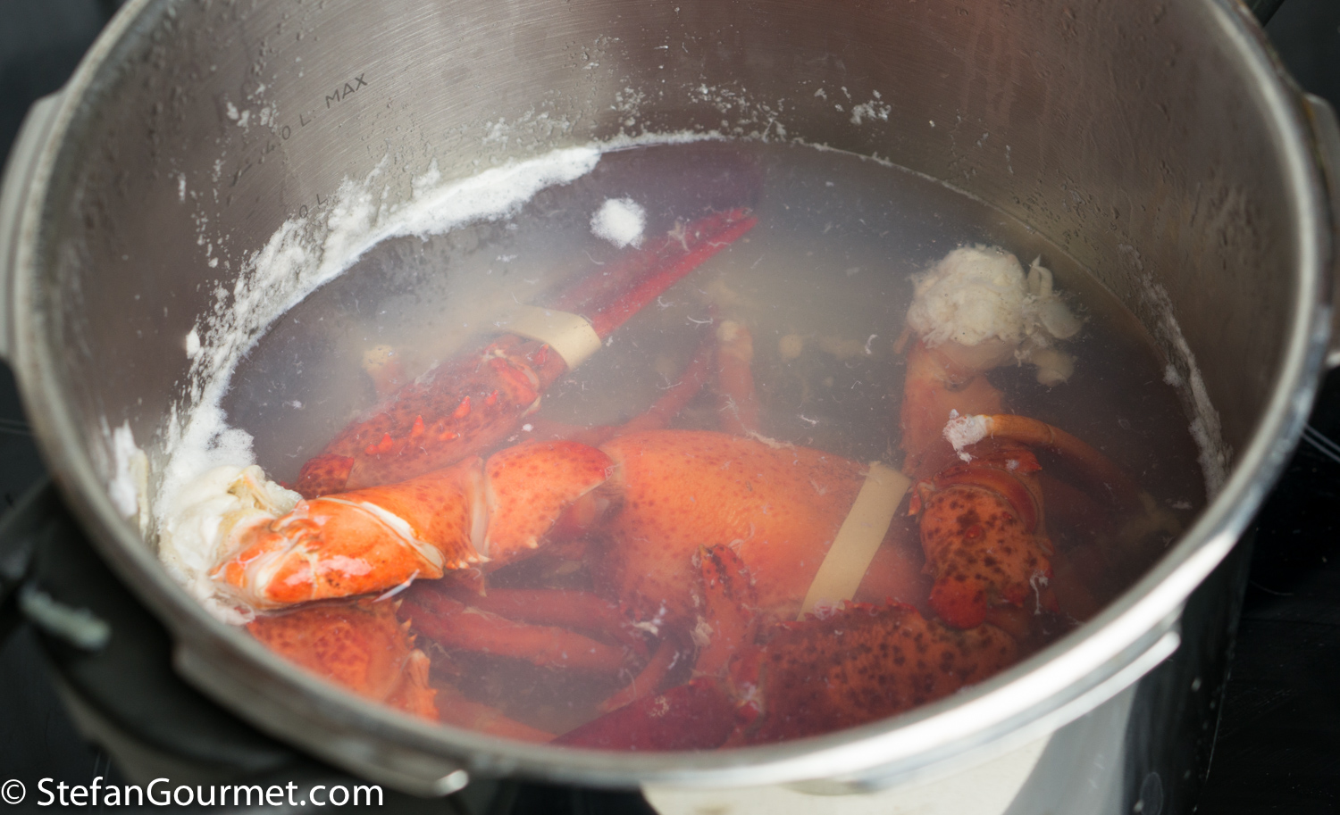 If using a pressure cooker, pressure cook the lobster stock for 30 minutes.