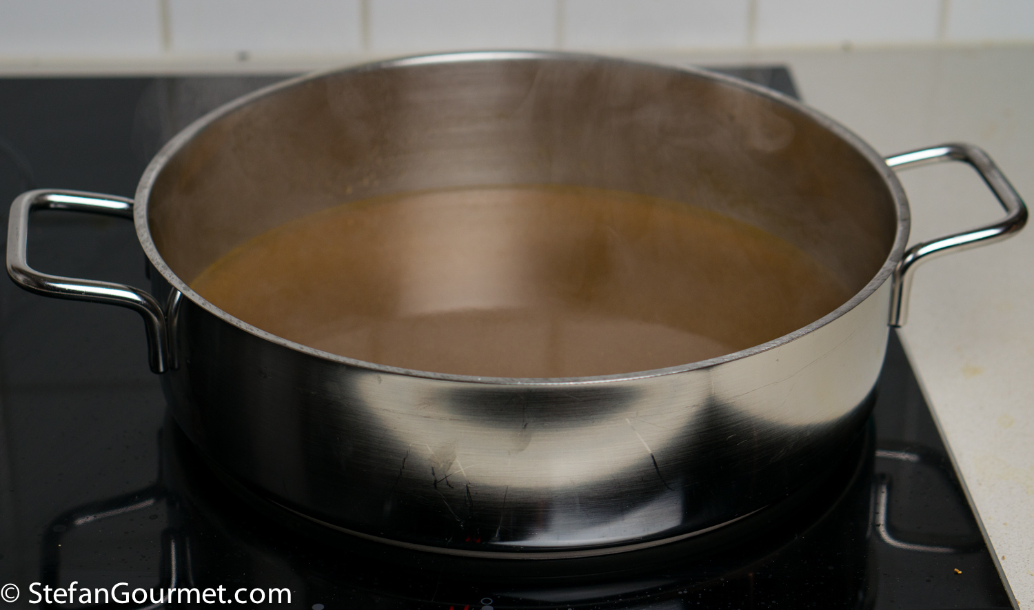 Simmer the stock until has been reduced to about 700 ml (about 3 cups).