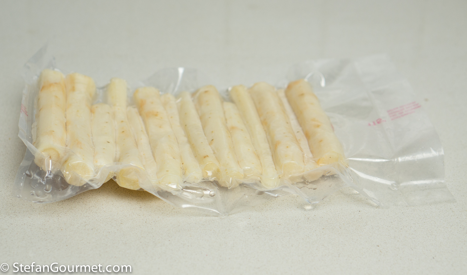 Sous-vide is the best way to cook the salsify while maintaining their delicate flavor. Season them with salt and vacuum seal them.