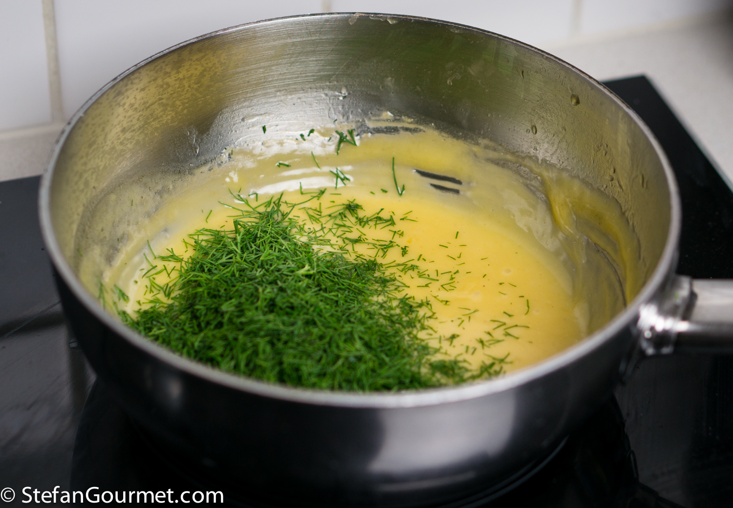 Meanwhile, make the sauce according to my foolproof method, but with dill instead of tarragon.