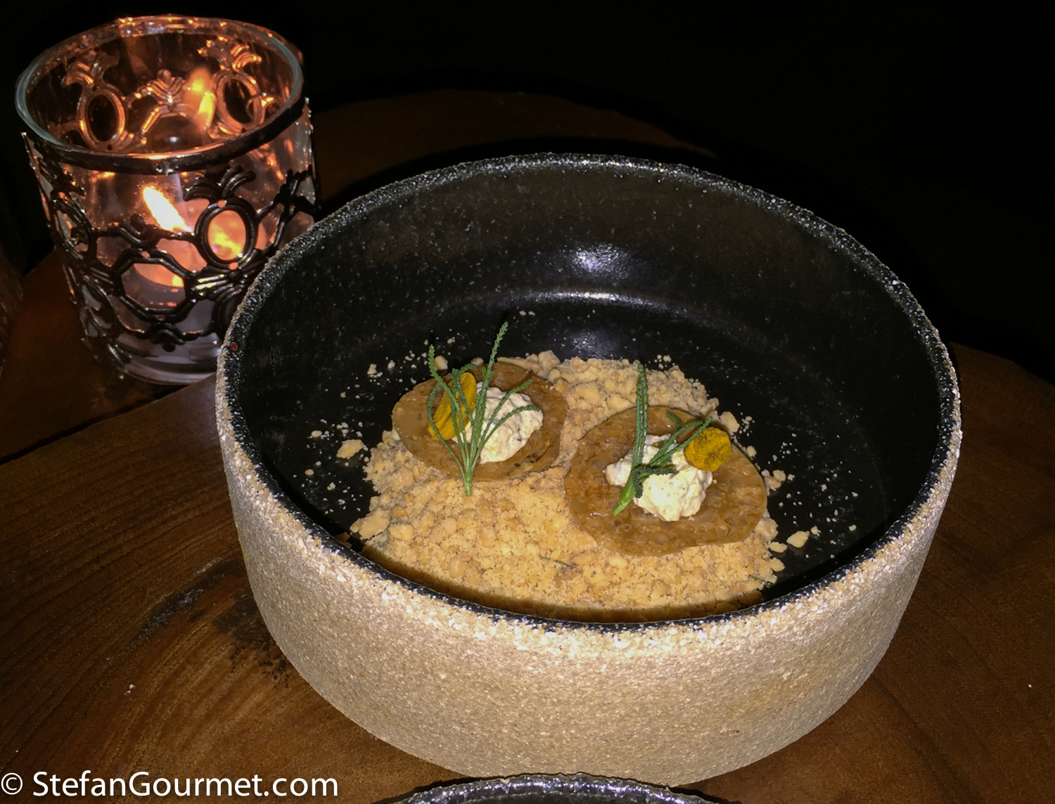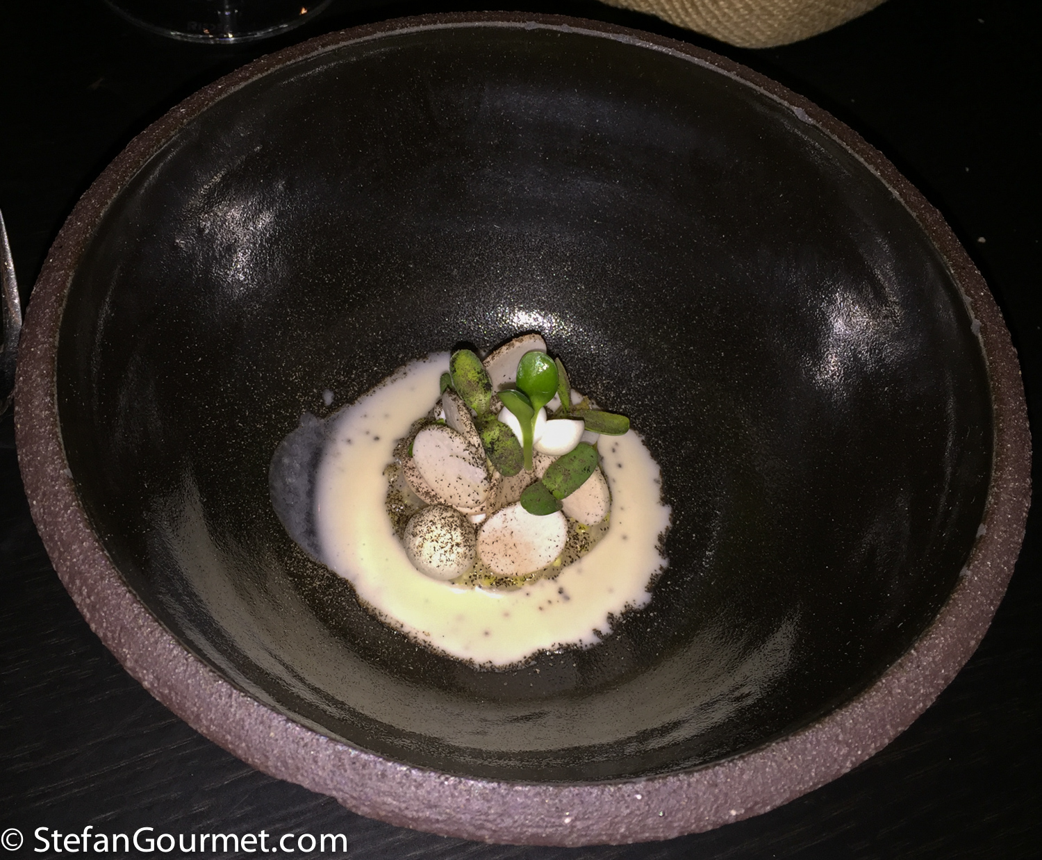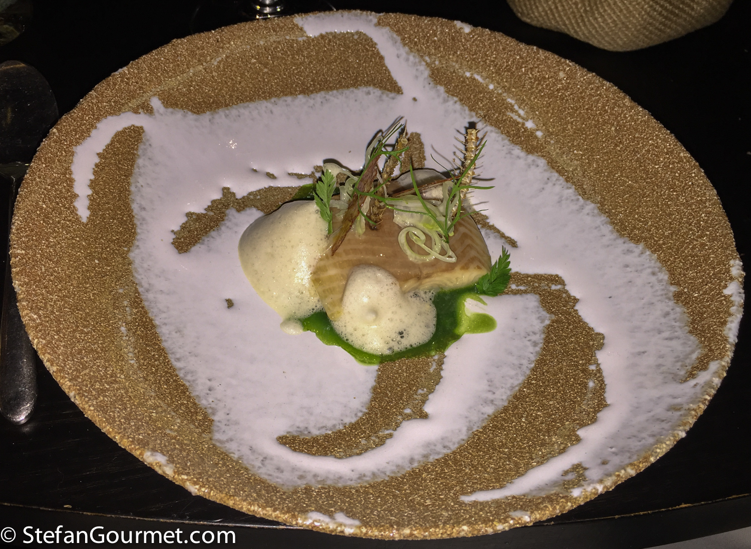 Second amuse bouche: a variation on the classic of pickle with peanut. To be honest I preferred the original as it had a special effect that you first tasted the pickle and then the peanut.