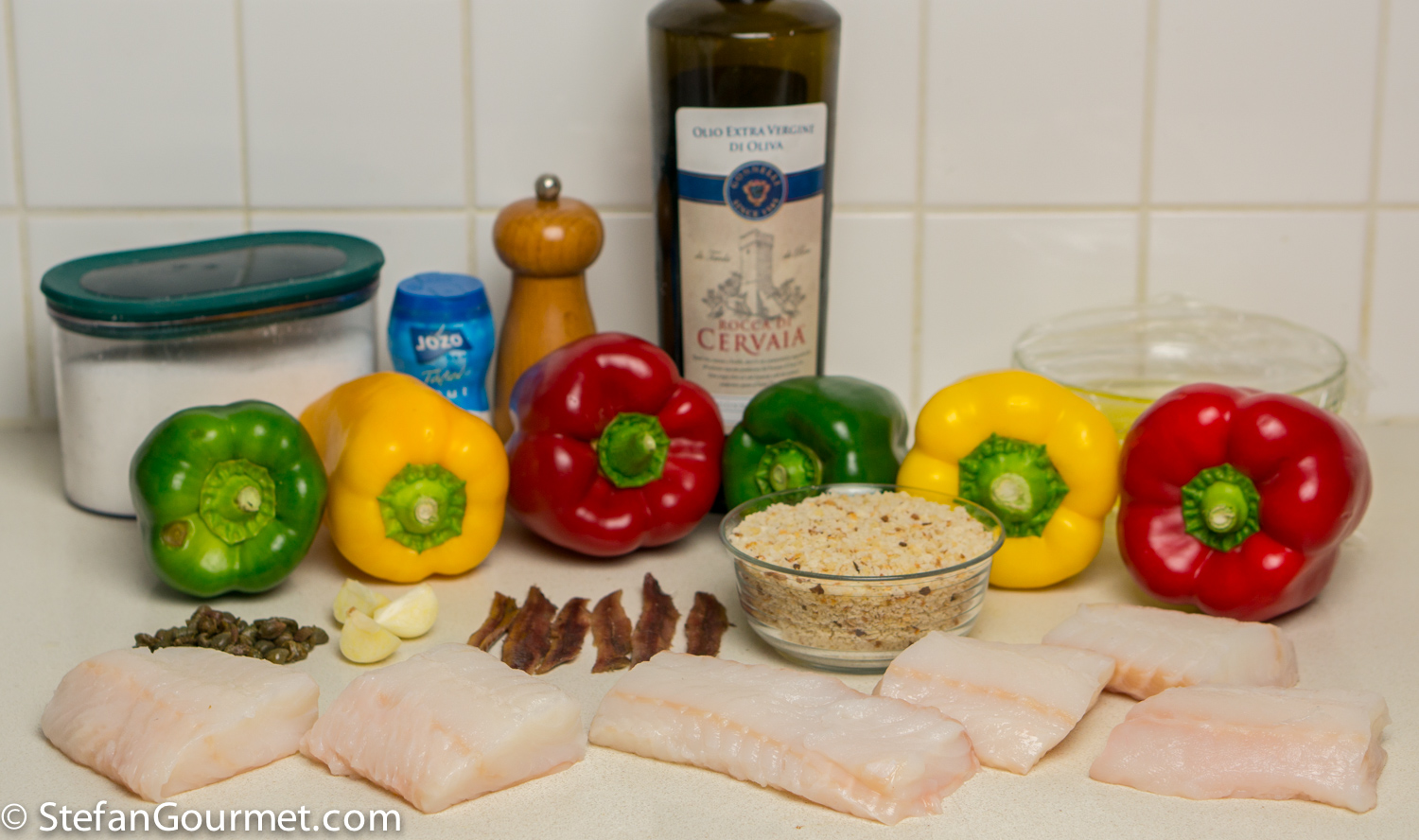Stefan! I accidentally deleted your comment on my last post about that roasted chicken. I have no idea how I did it but I did it. Anyways, thank you for dropping by and for your ever supporting and intelligent feedback. I almost wanna ask you to post your comment again so I can reply to it and have logged but I know that would be annoying 🙂 I have 2 questions though. Wolffish? never even heard of it. Why remove the garlic? Lovely crust on that fish by the way, this is a dish I would definitely enjoy. I happen to love anchovies, fish and peppers. Take care!