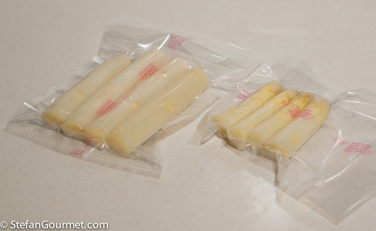 In the meantime, cut off the tips at about 10 cm (4″) from the top. If cooking sous-vide, vacuum seal the tips separately from the stalks with some salt and freshly ground white pepper.