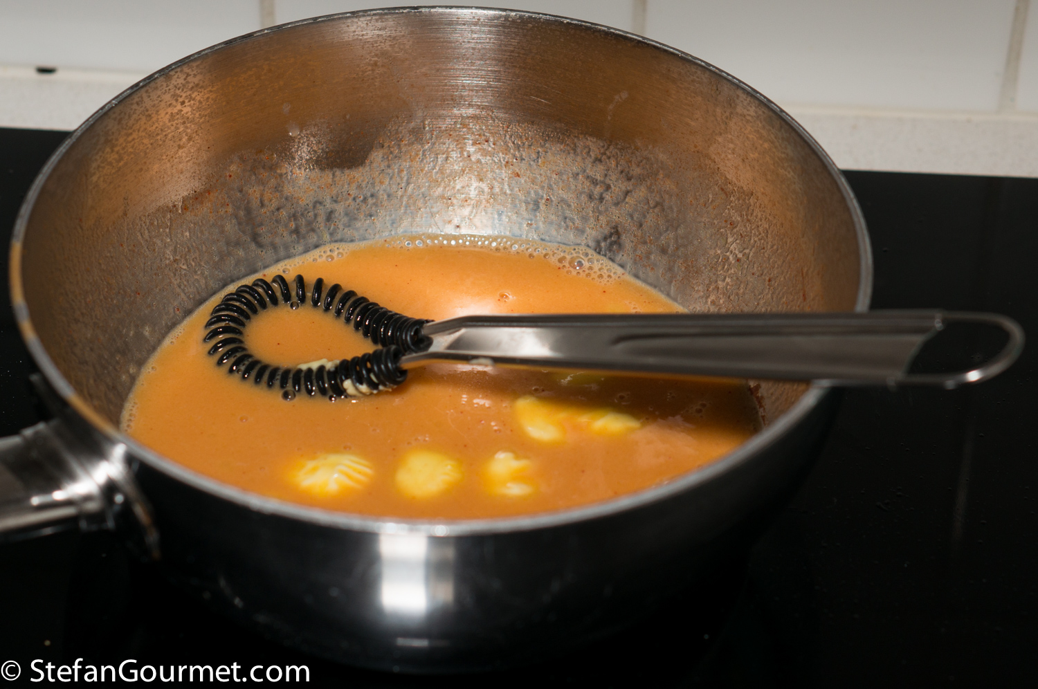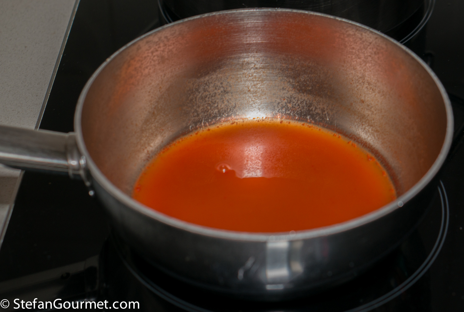 Reduce to about half and allow to cool a bit.