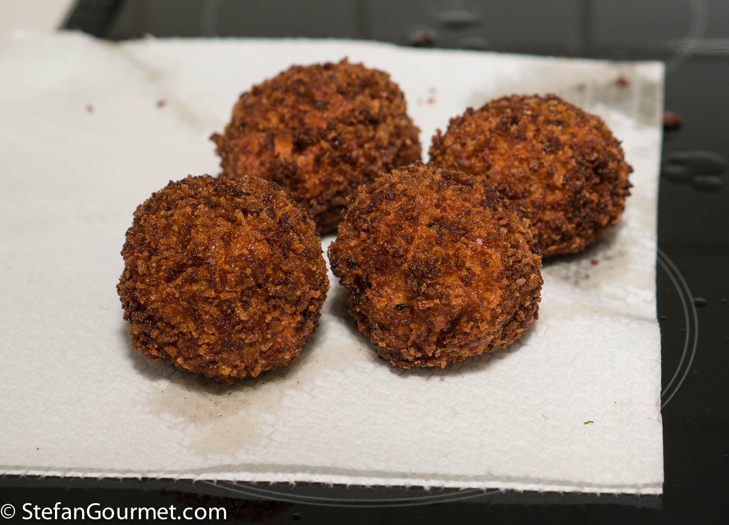 I had some left-over remoulade sauce in my fridge, along with some parsnips that needed to be used. And so I decided to buy some fish fillet and make these fish and parsnip balls. The reasoning behind it was that there is tarragon in the remoulade sauce (as well as the similar chervil) and that tarragon goes well with parsnip. And as remoulade sauce is great with fried fish, this had to be a winner. And so it was!