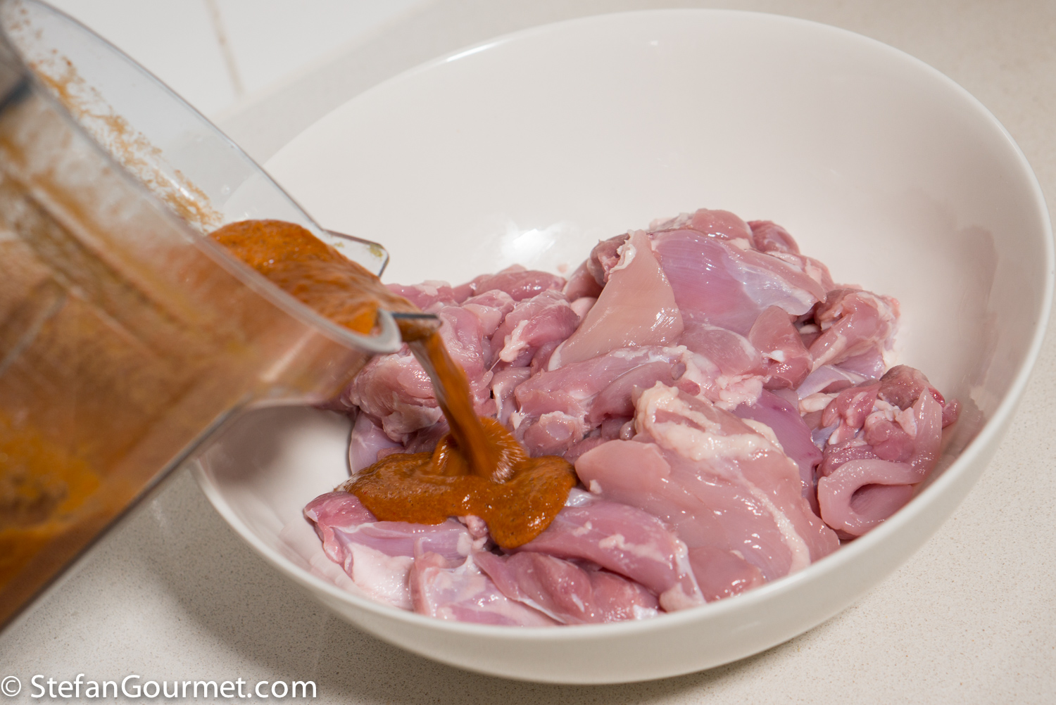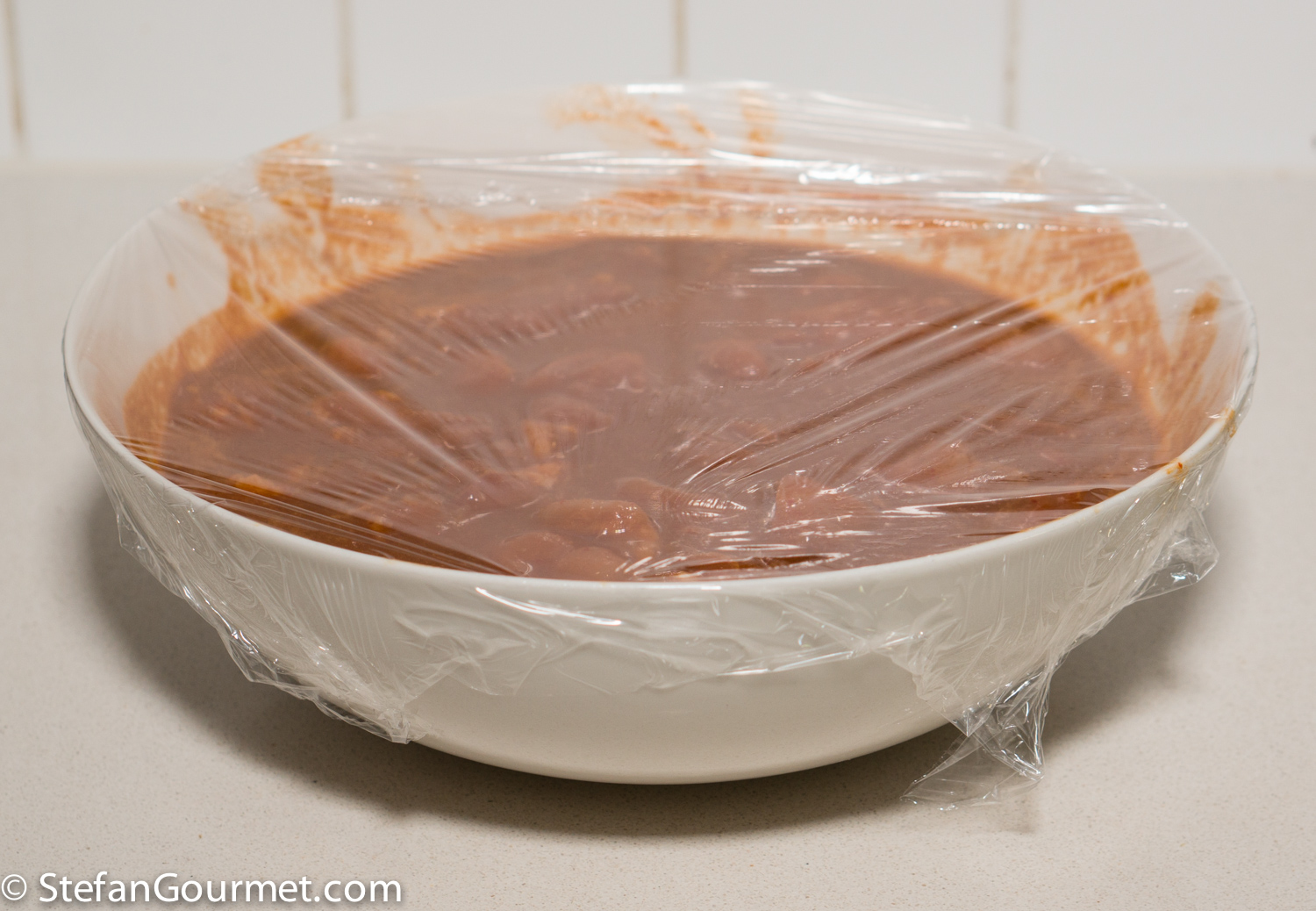 Stir so the chicken is uniformly covered with the marinade. Cover with plastic wrap and refrigerate to marinate for 1-4 hours.