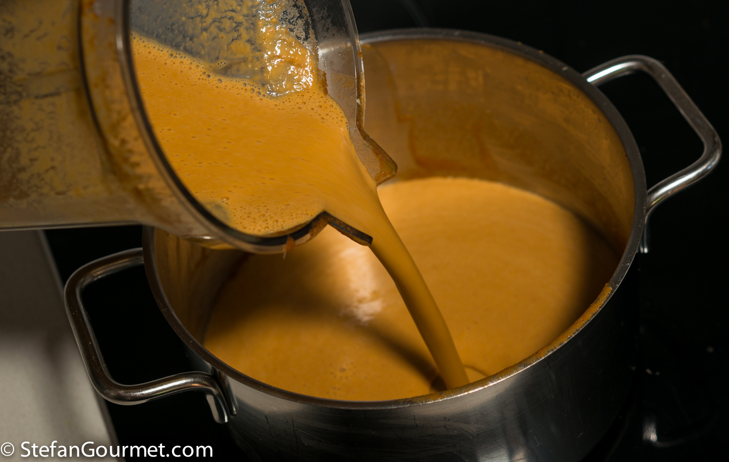 Pour the sauce into a saucepan and bring to a boil, then lower the heat.