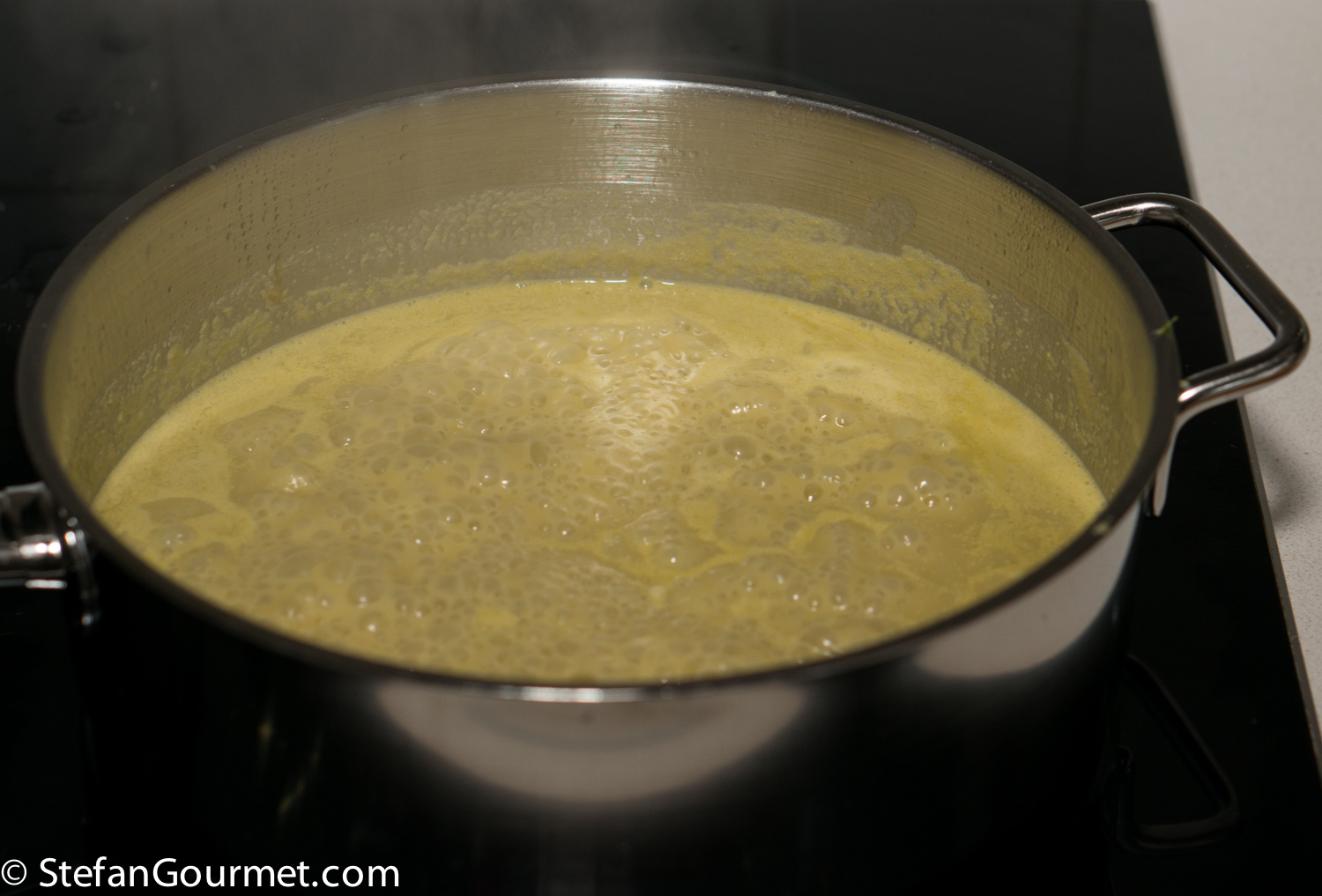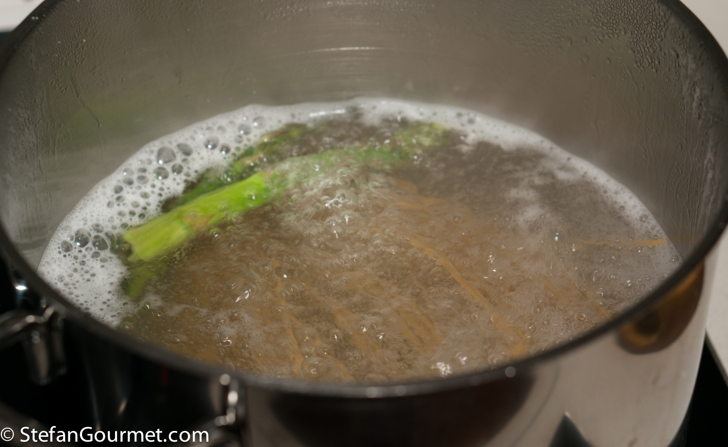Bring the asparagus stock to a boil.
